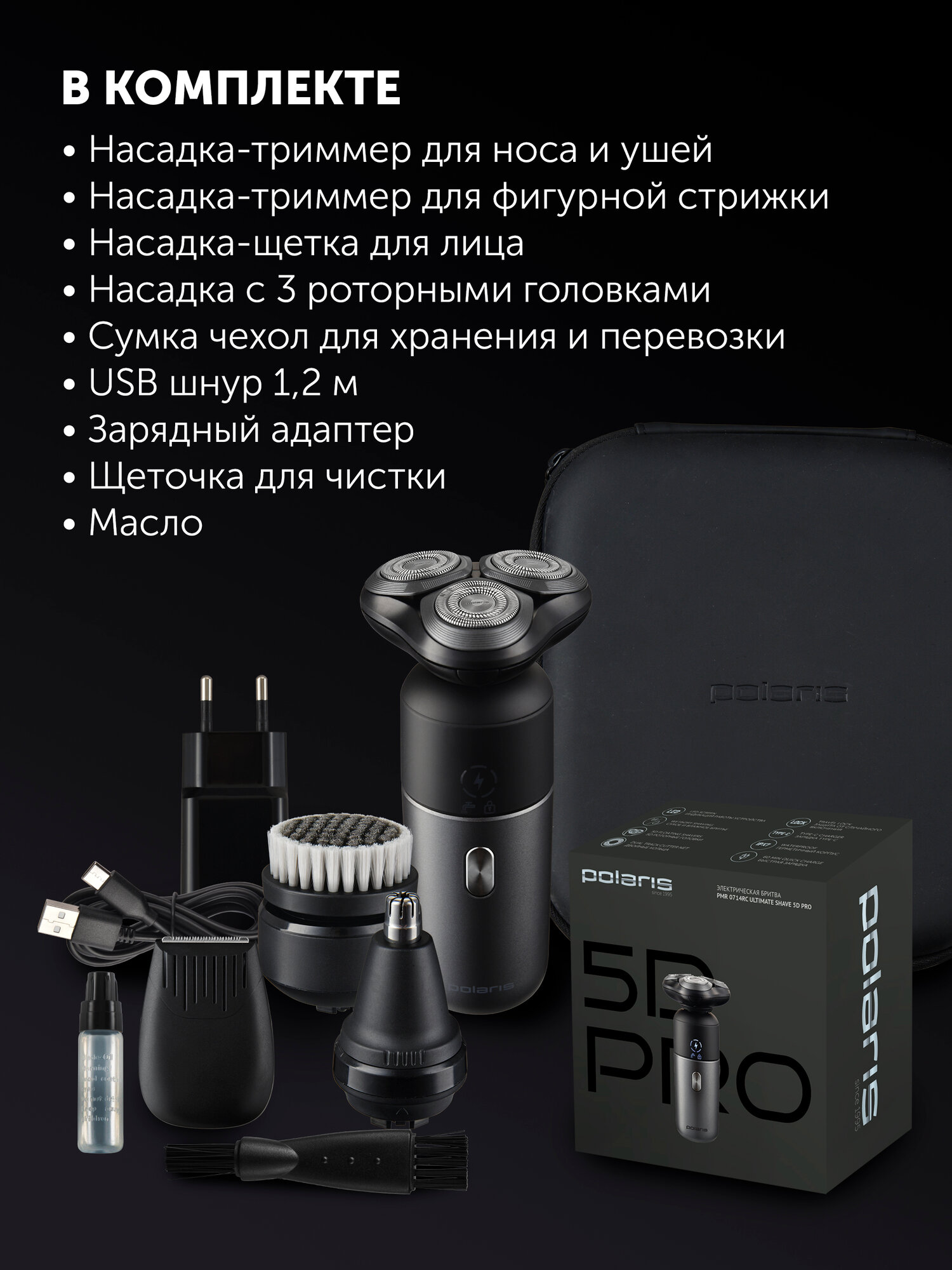Бритва электрическая Poalris PMR 0714RC Ultimate shave 5D PRO Черный-Серебряный интересное: