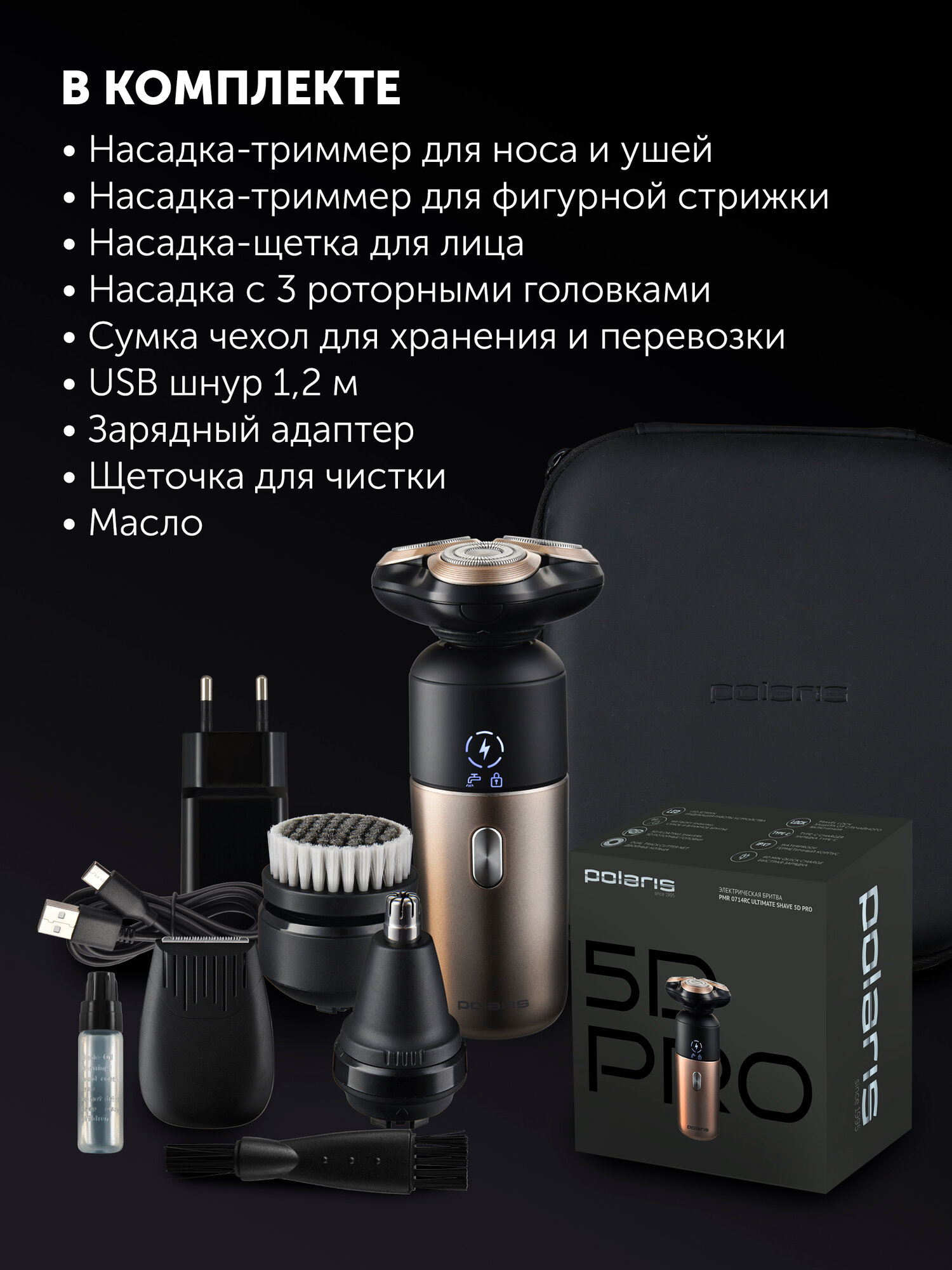 Бритва электрическая Polaris PMR 0714RC Ultimate shave 5D PRO Черный-Золотой интересное: