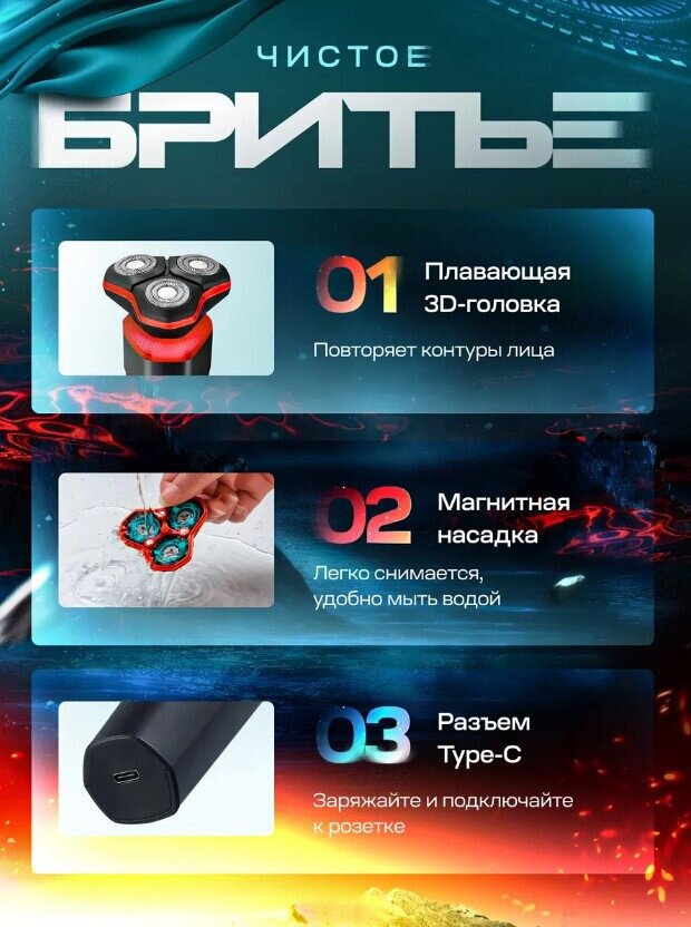 Электробритва для мужчин для сухого бритья 3D/электрическая бритва мужская/домашняя/для бритья головы, бороды/красный/влагозащита интересное: