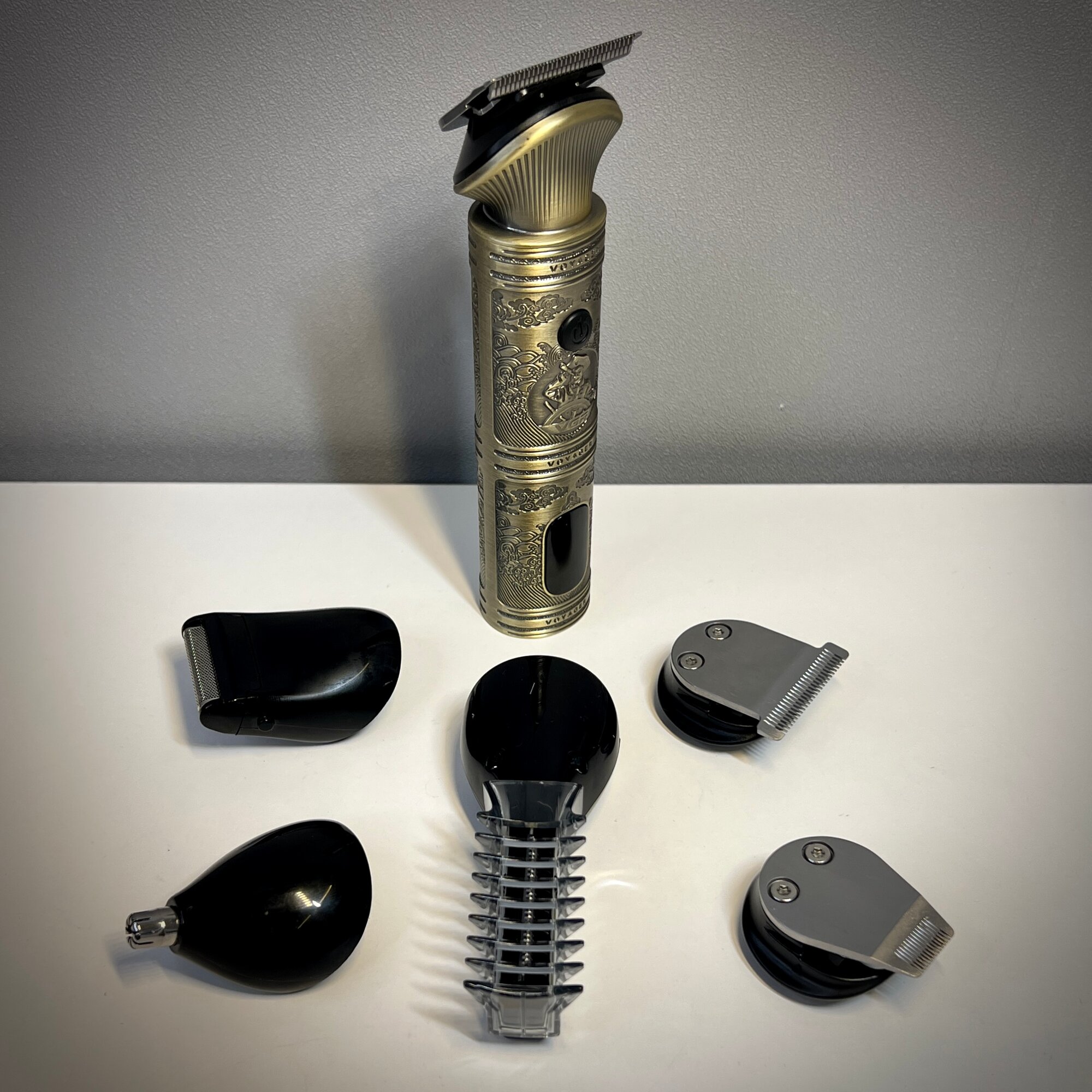 | Подробная комплектация | 1. Машинка для стрижки/ Триммер для волос VGR V-106 2. Режущие направляющие гребенки (1/3/5/7 мм) 3. Направляющие для стрижки волос (3/6/9/12/15 мм) 4. Насадка для тела. 5. Машинка для стрижки волос/ Шейвер 6. Дизайнерский триммер 7. Бритвенная насадка 8. Триммер для носа и ушей. 9. Масло 10. Щетка для чистки. 11. USB-кабель для зарядки. 12. Дорожный чехол |