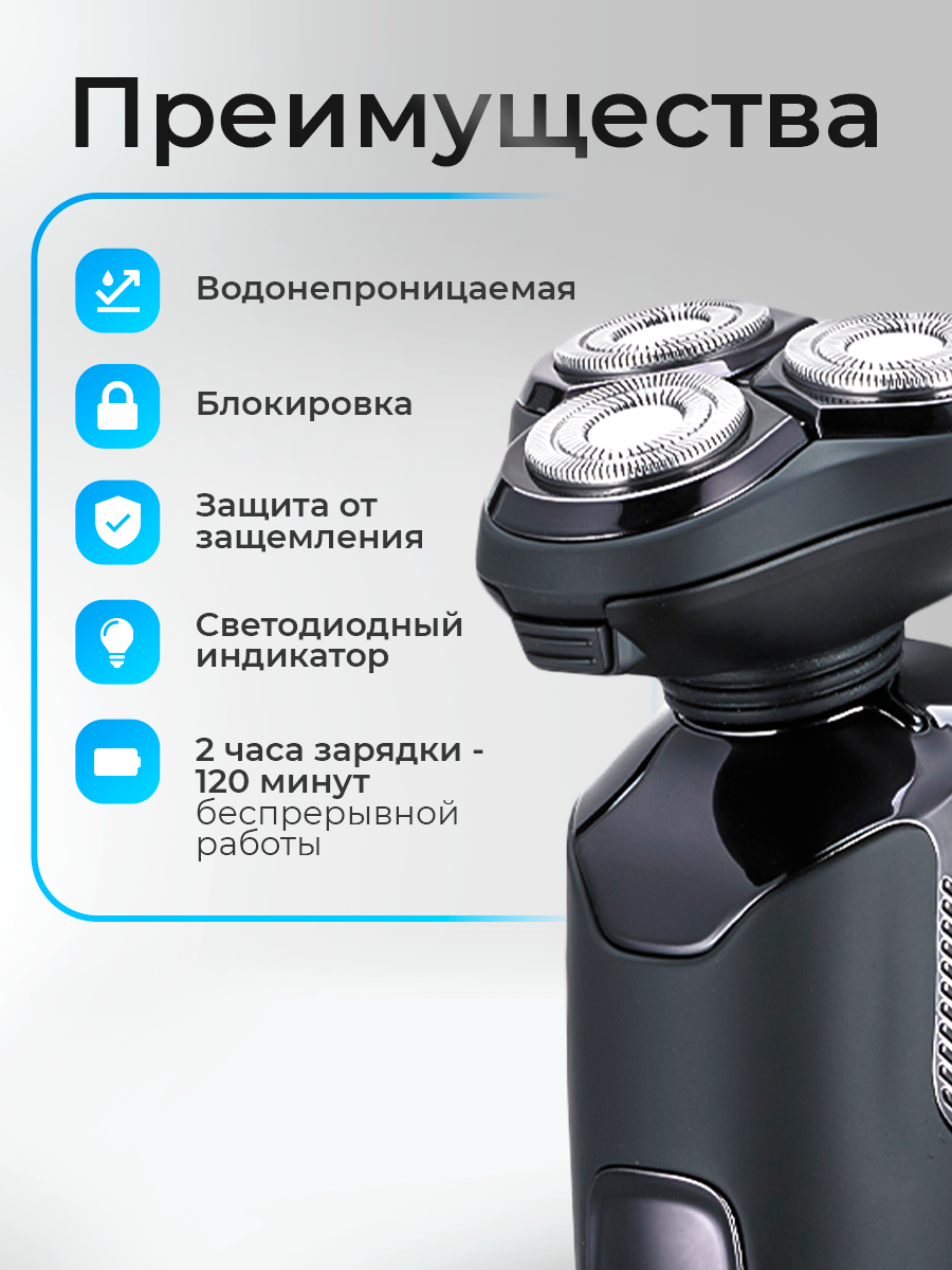 | Дополнительная информация | Водонепроницаемая, материал корпуса abs-пластик, электробритва профессиональная, насадки для бритья, для бороды, для усов |