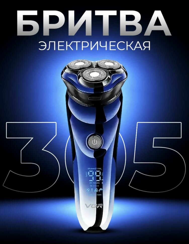 Профессиональная аккумуляторная электробритва для мужчин VGR V-305 (синяя)