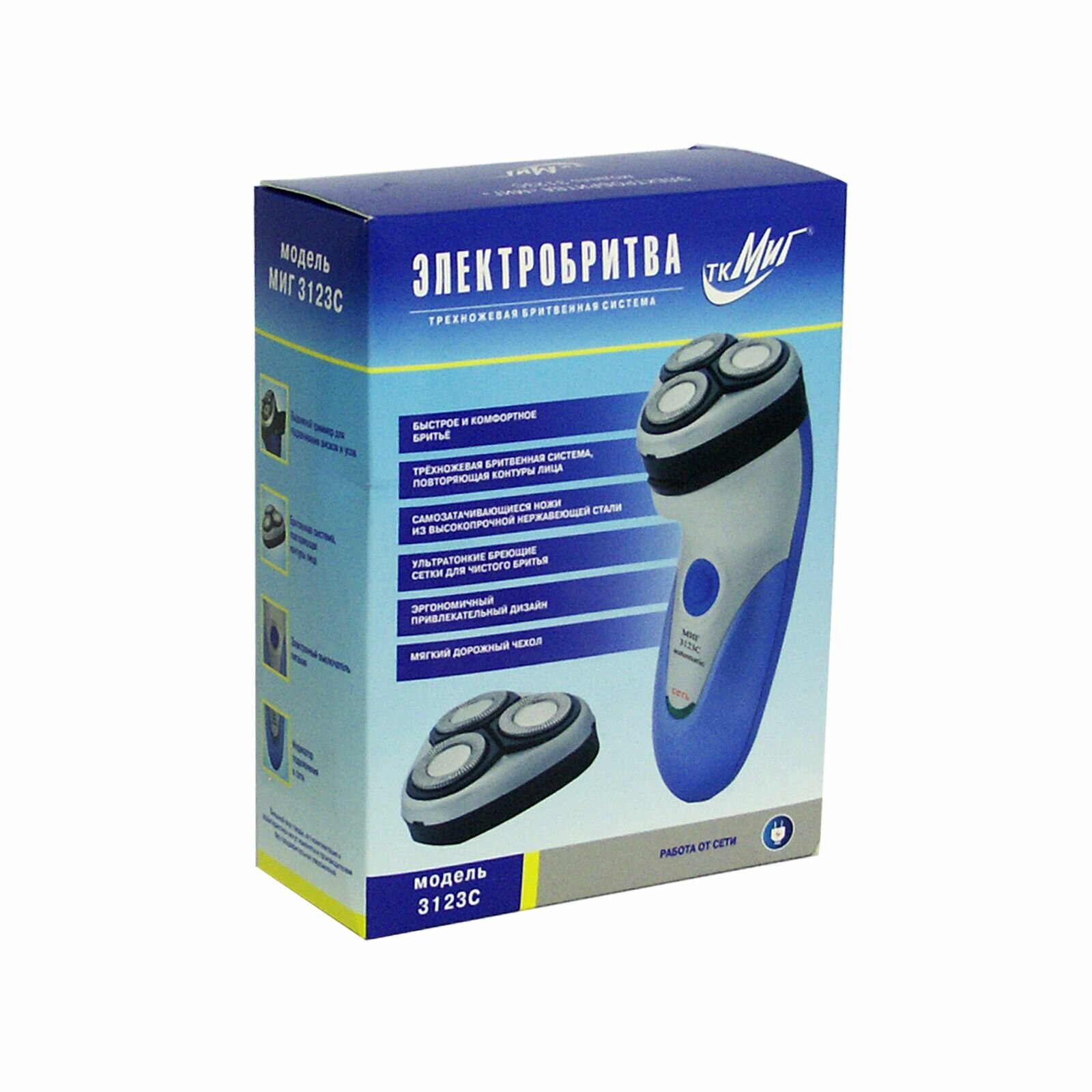 Купить Электробритва МИГ 3123С, 3 бритвенные головки, плавающие, сетевая, с триммером