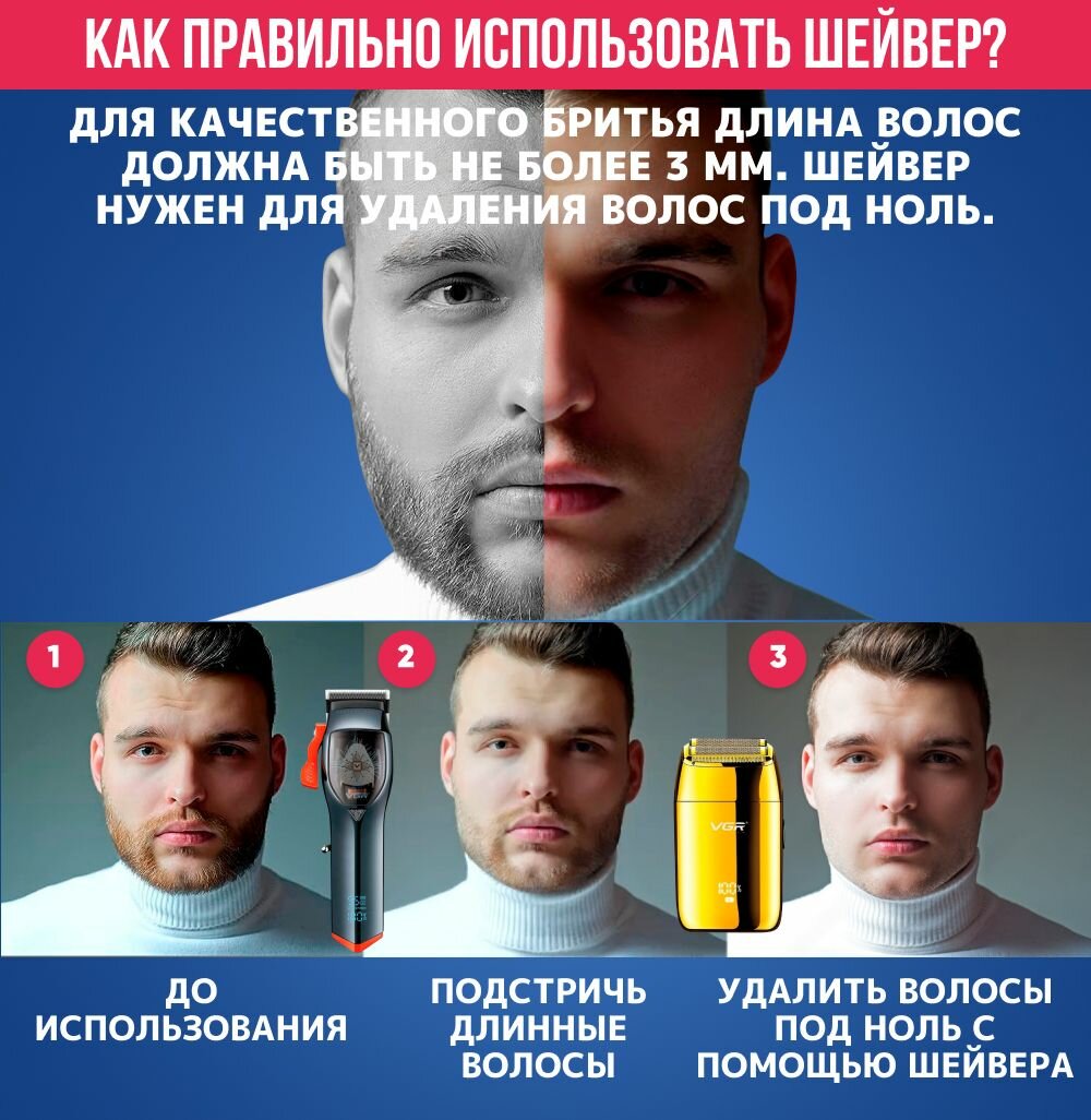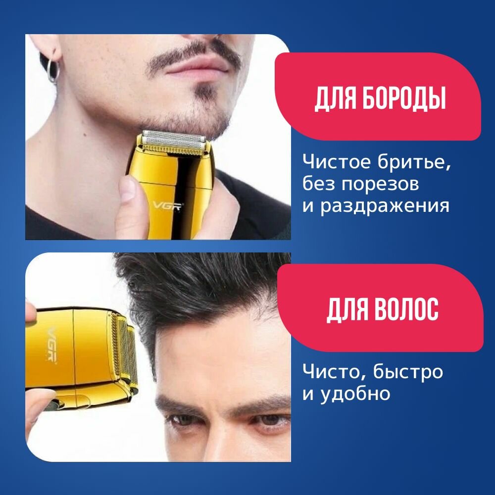 Электробритва VGR V-399 / Беспроводной шейвер для бритья головы и бороды / Машинка для сухого и влажного бритья интересное:
