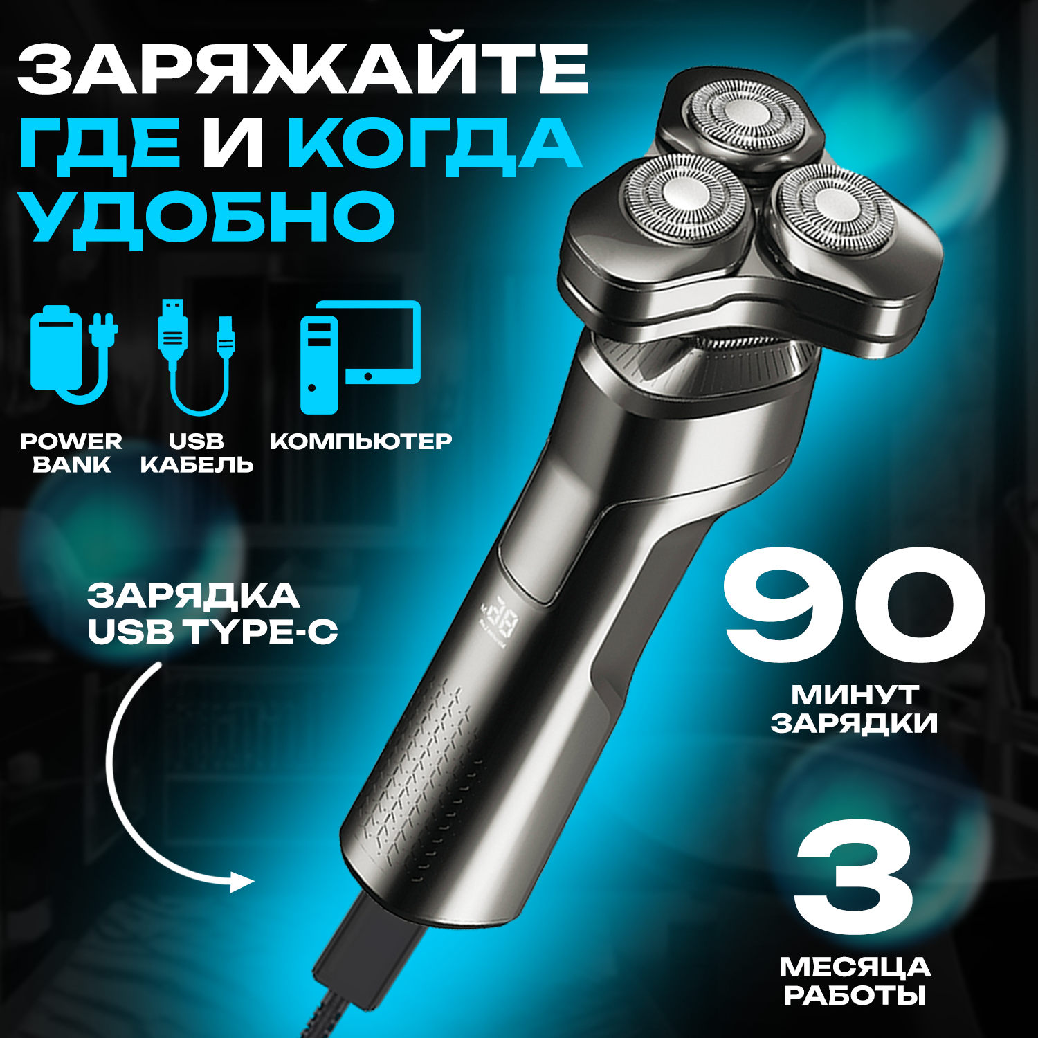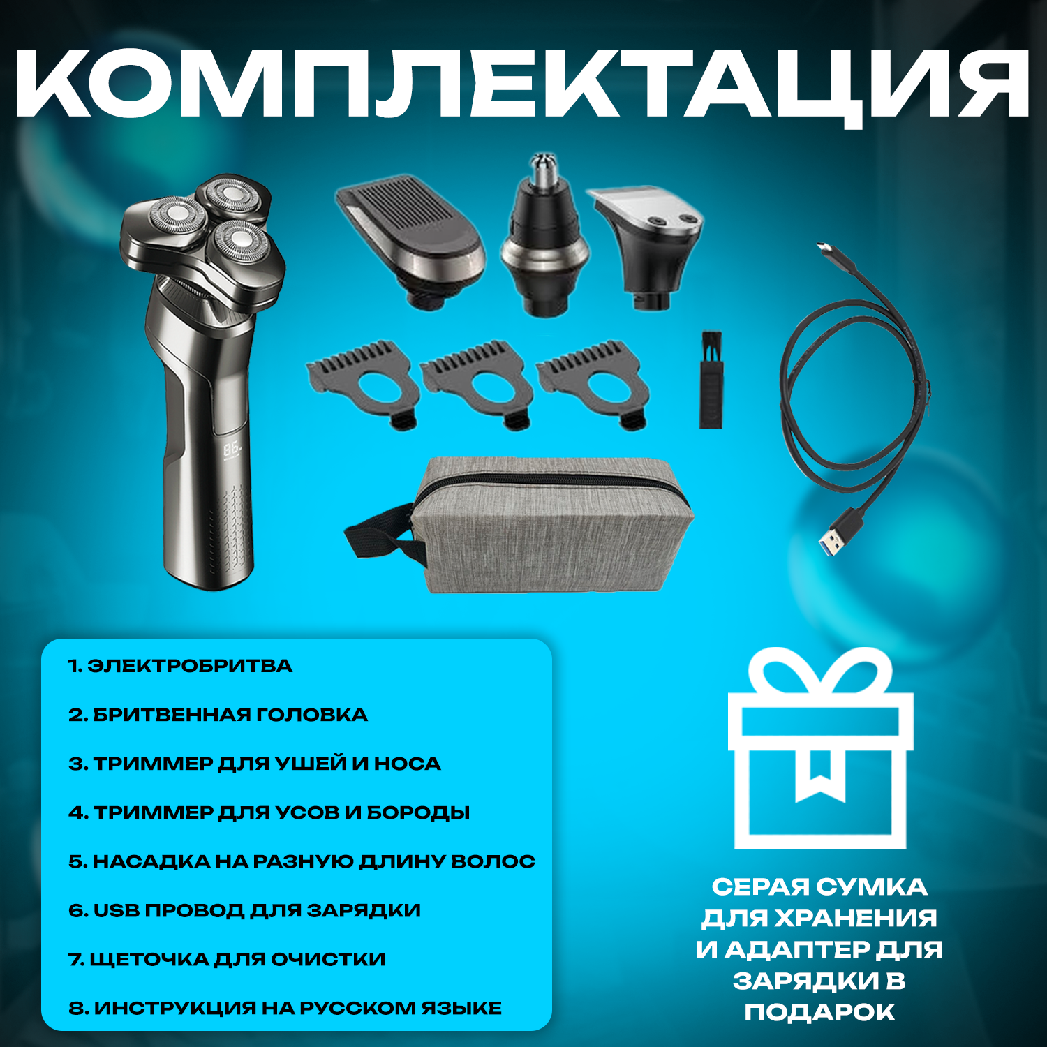 Электробритва мужская 4 в1, триммер, машинка для стрижки волос, шейвер для бороды, сухое, влажное бритье с насадками интересное: