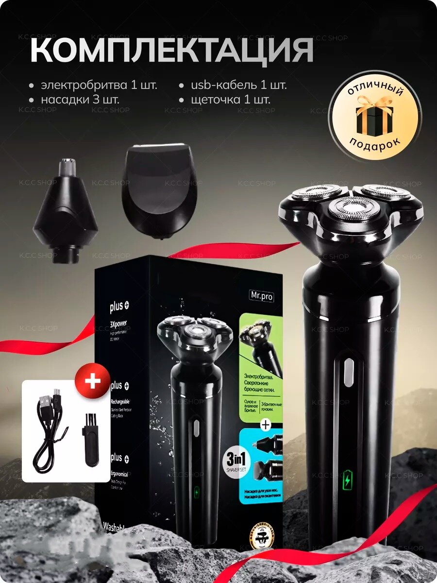 Купить Электробритва 3 в 1 для мужчин для сухого бритья 3D/триммер/электрическая бритва мужская/домашняя/для бритья головы, бороды/черный