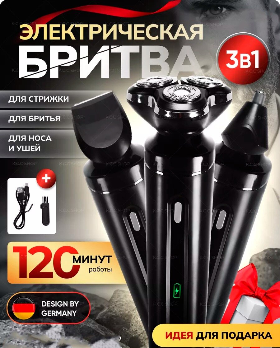 Электробритва 3 в 1 для мужчин для сухого бритья 3D/триммер/электрическая бритва мужская/домашняя/для бритья головы, бороды/черный интересное:
