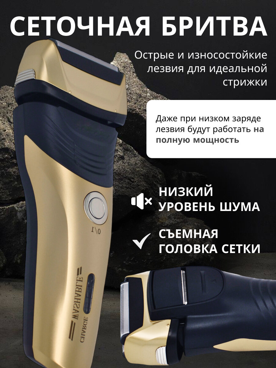 Профессиональная электробритва , шейвер, для стрижки бороды и усов, откидной триммер, индикатор включения, для сухого и влажного бритья интересное: