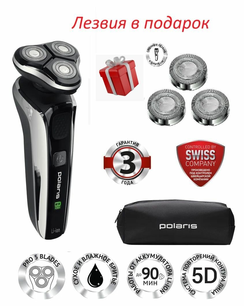 Polaris Электробритва 0307RC wet&dry PRO 5 blades + Подарок лезвия интересное: