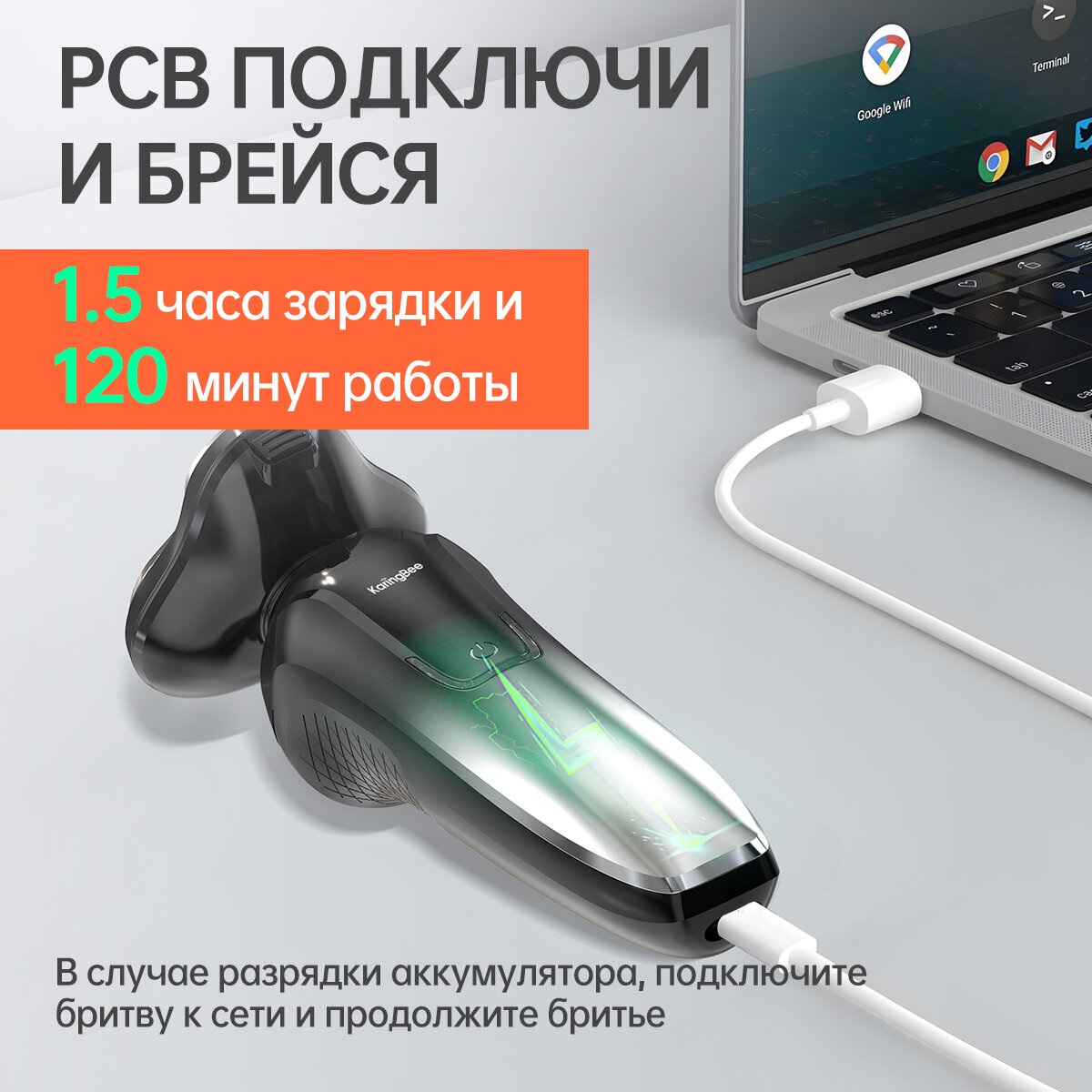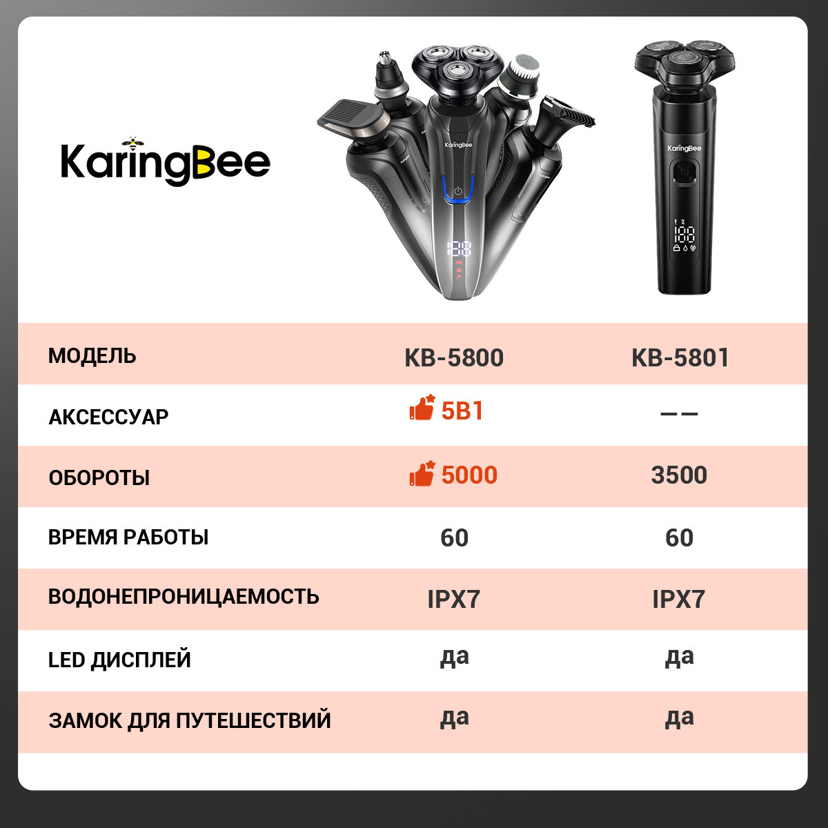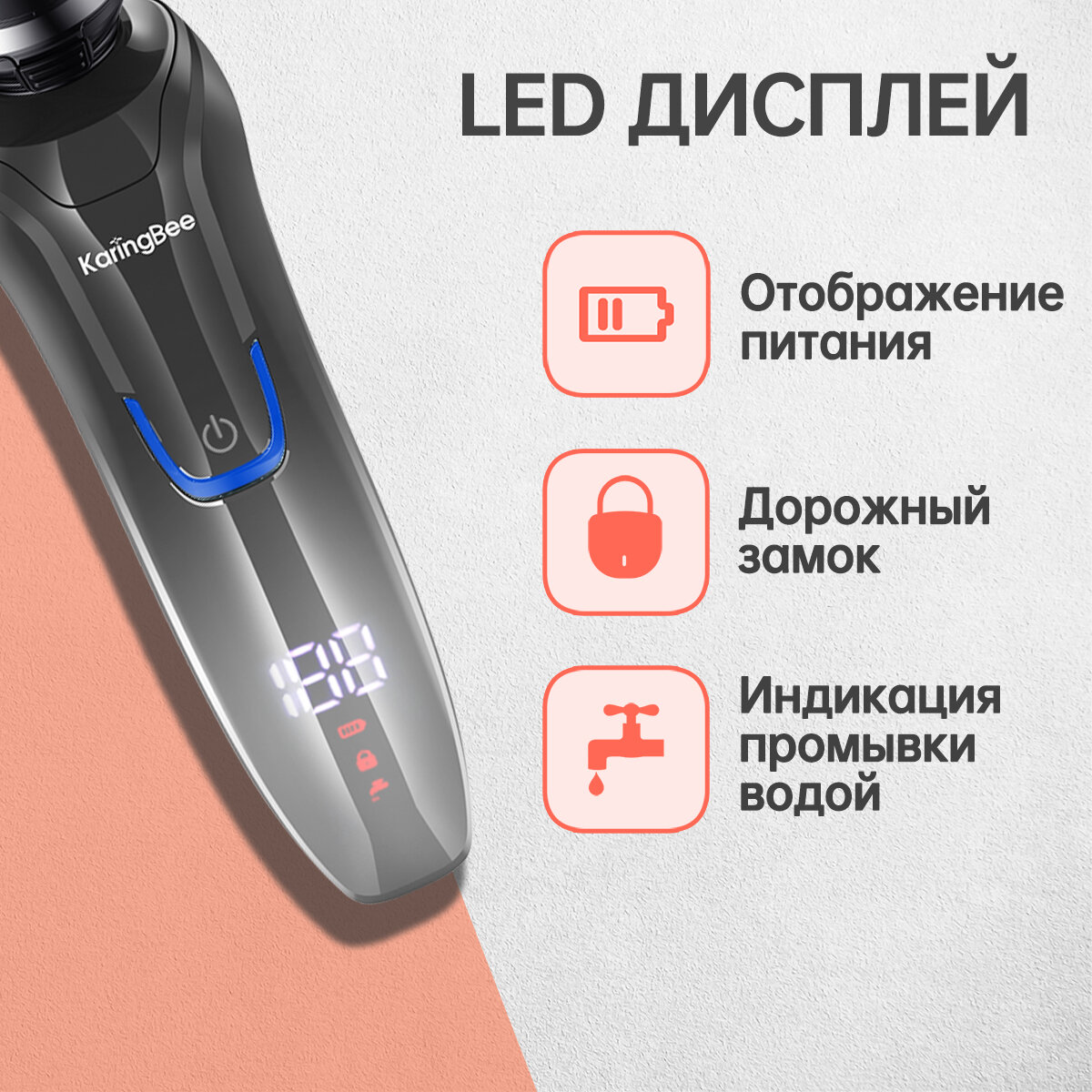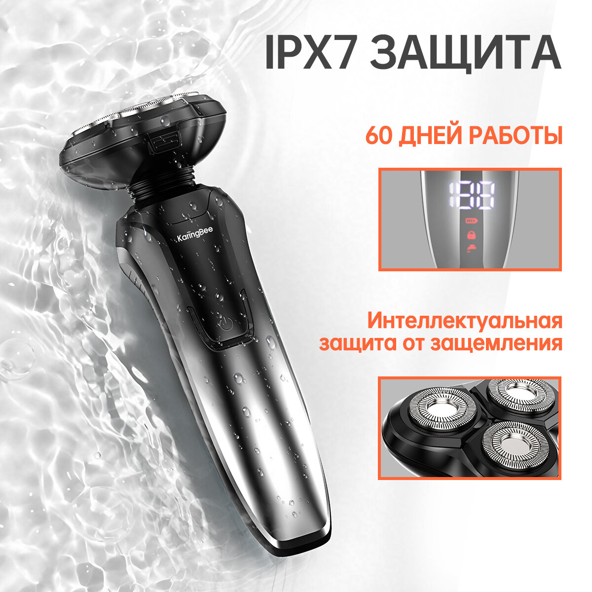 Бритва электрическая , KaringBee KB-5801 , Смарт LED дисплей , 60 дней автономной работы