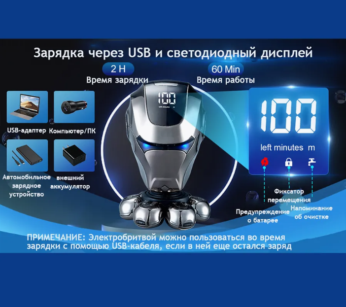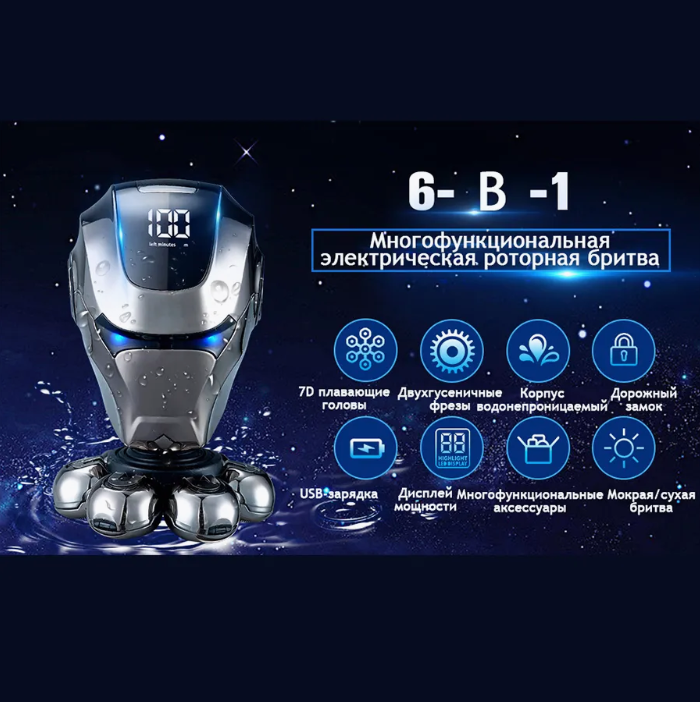 | Дополнительная информация | Электробритва и радиозарядка 7 в 1, Подстригитесь и побрейтесь за 60 секунд |