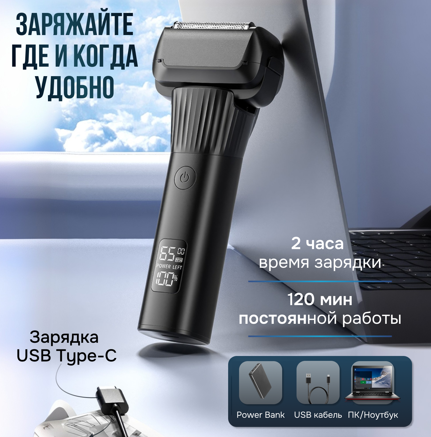 | Особенности | быстрая зарядка / дисплей / для чувствительной кожи / индукционная зарядка / нескользящая вставка на рукоятке / питание от USB / триммер |