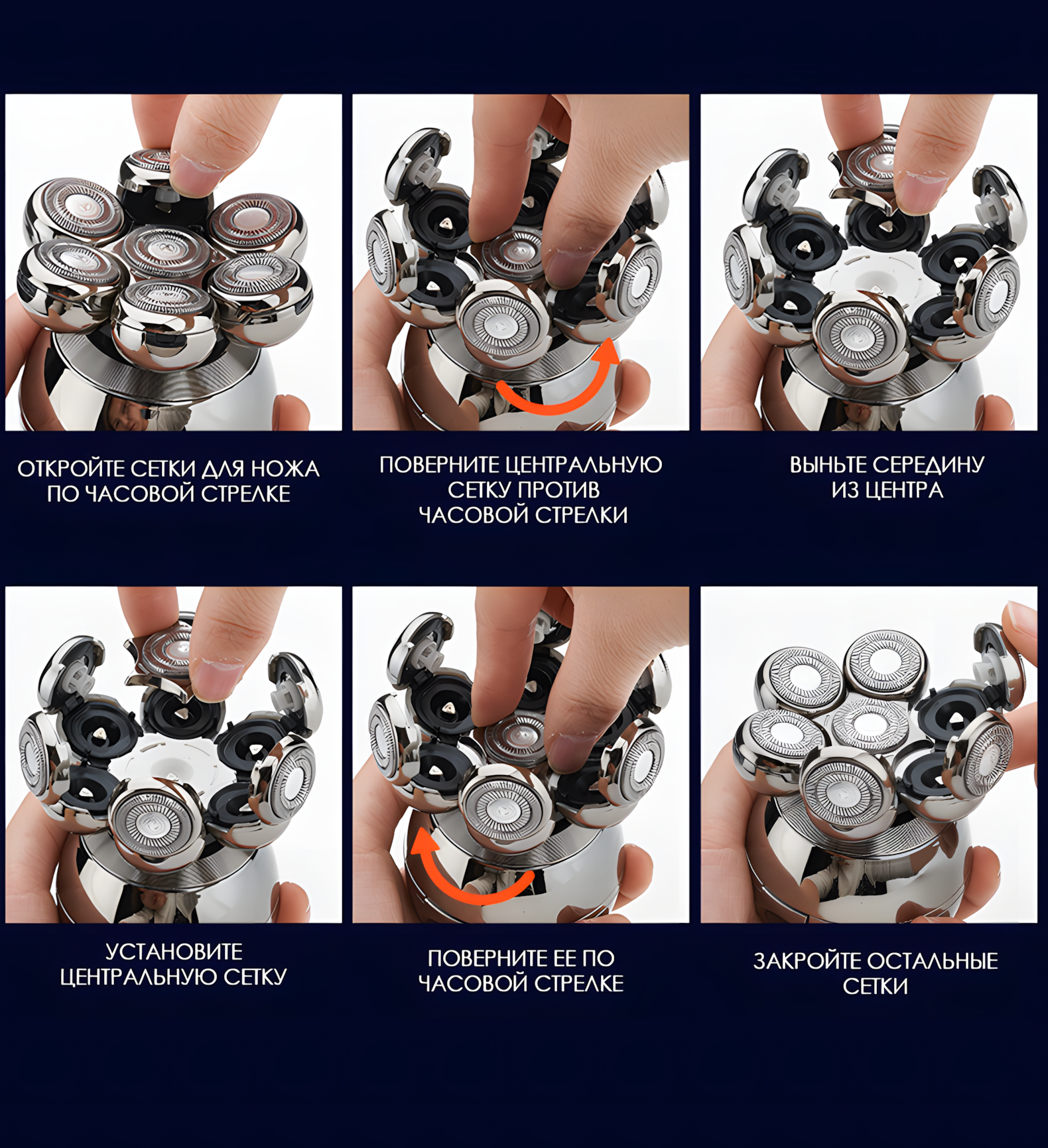 Электрическая бритва RQ8870 с 7 лезвиями и ЖК-дисплеем, серебристый