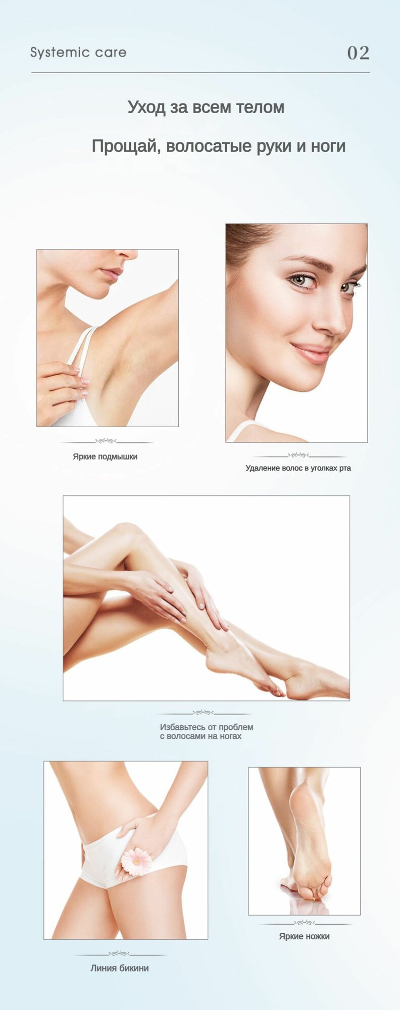| Область применения | зона бикини / подмышечные впадины |