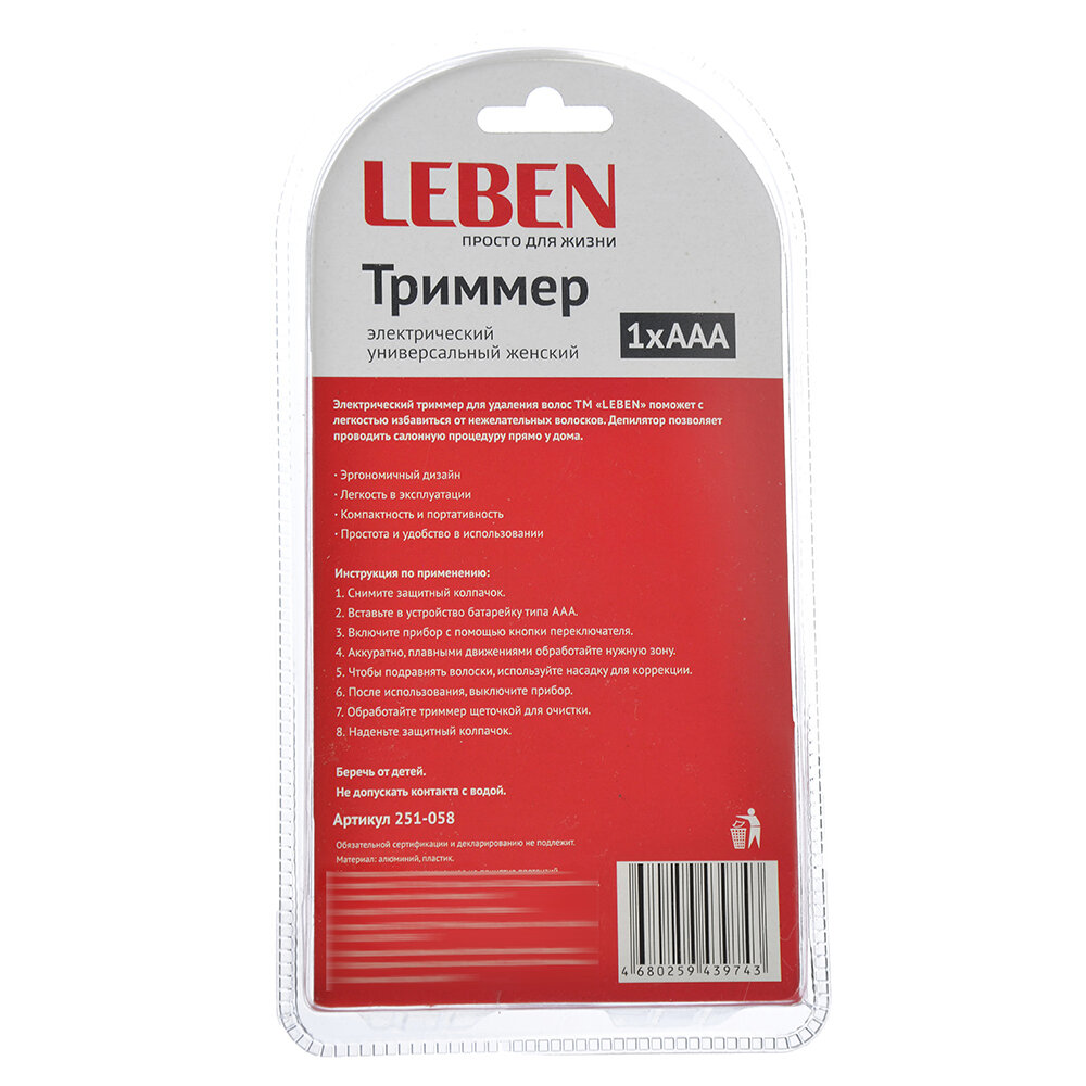 Триммер универсальный женский LEBEN, 13см, 1 насадка, 1 щетка, алюминий, пластик, питание 1xAАА интересное:
