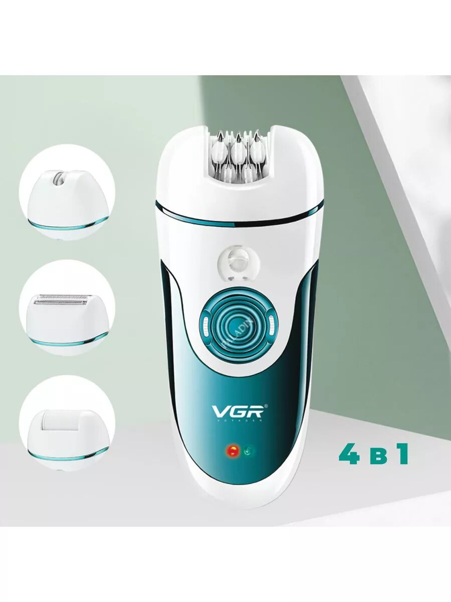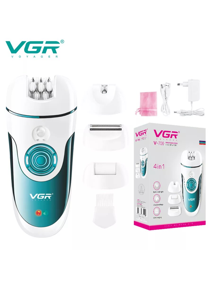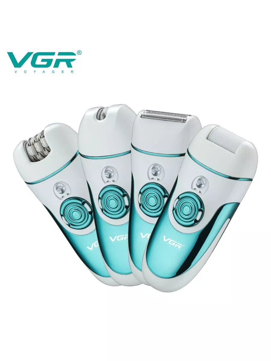Купить Эпилятор VGR, беспроводной, 4 насадки для эпиляции, педикюра и бритья