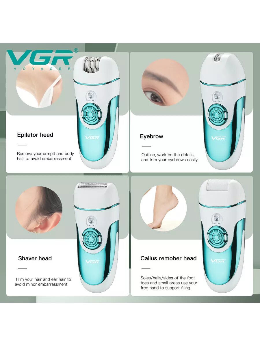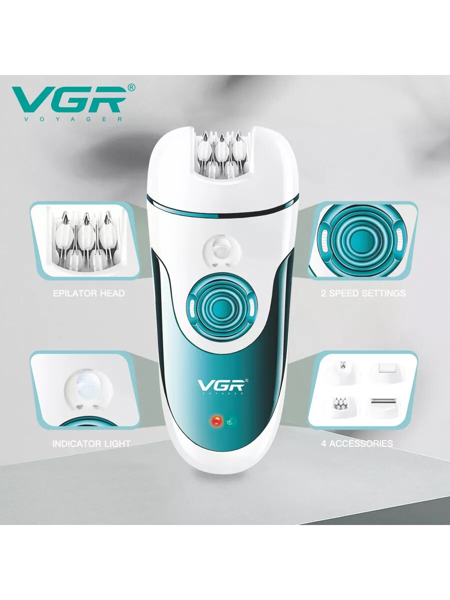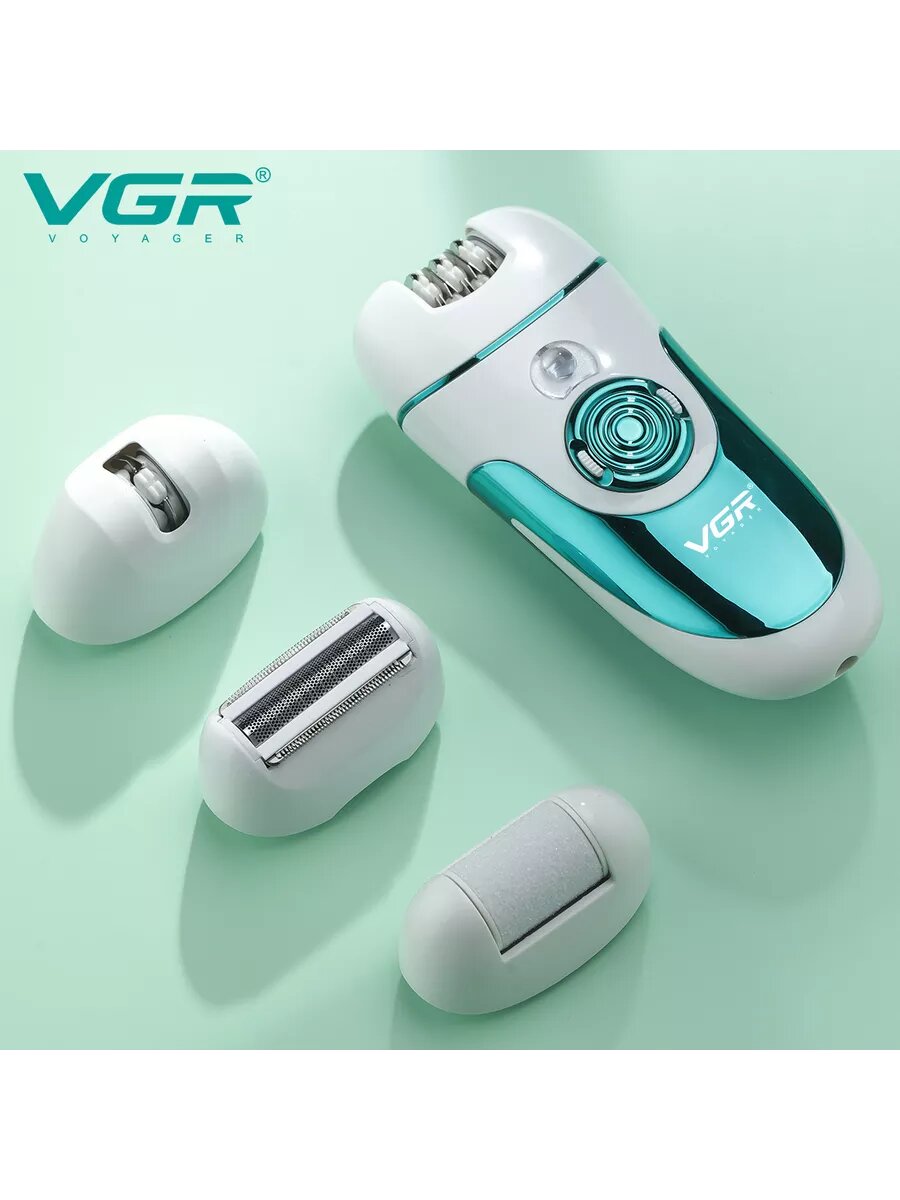 Купить Эпилятор VGR, беспроводной, 4 насадки для эпиляции, педикюра и бритья