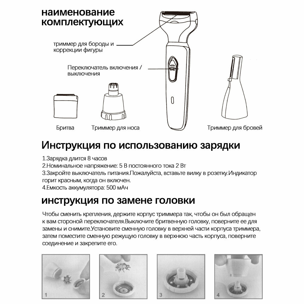 | Дополнительные функции | использование с применением пены / придание формы бровям / стайлинг в области бикини |