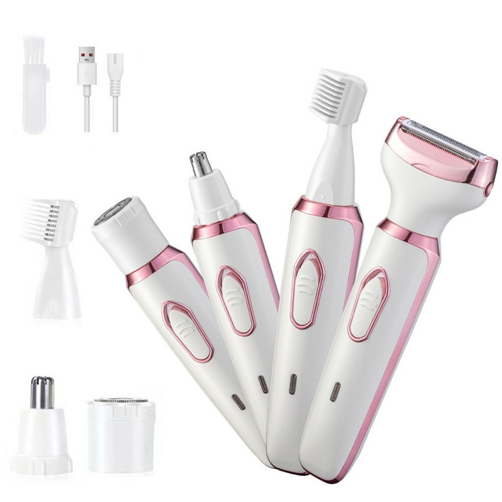 Купить Эпилятор-бритва с насадками, для бикини, лица, подмышек, тела, питание от акк, белый/розовый