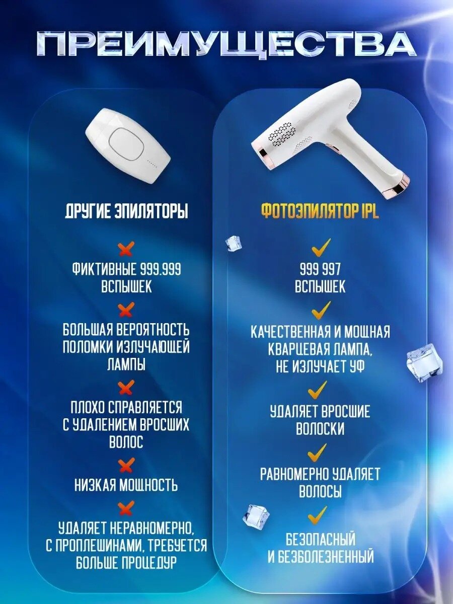 Фотоэпилятор IPL женский/Лазерный эпилятор/депилятор/электрический профессиональный аппарат для удаления волос/лампа интересное: