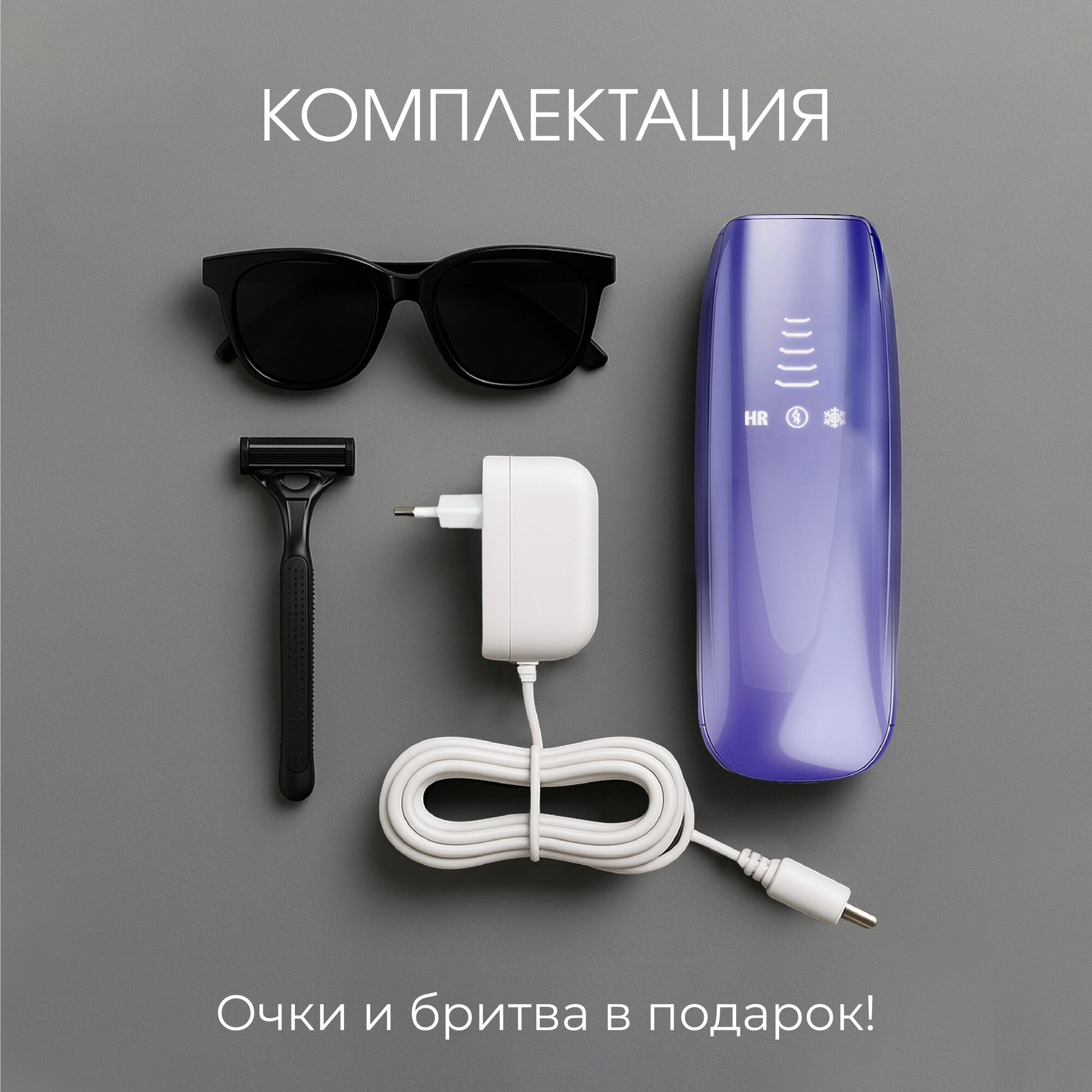 | Подробная комплектация | эпилятор, блок питания, очки, бритва |