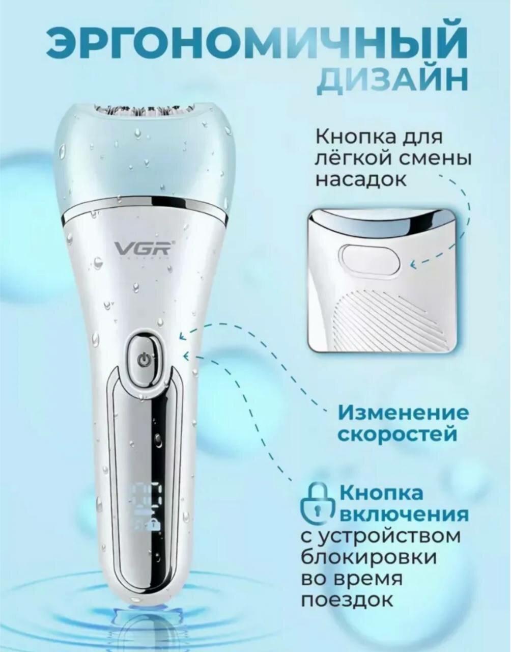 Эпилятор VGR V-733 6в1, с массажем, для тела, лица и зоны бикини, встроенный аккумулятор интересное: