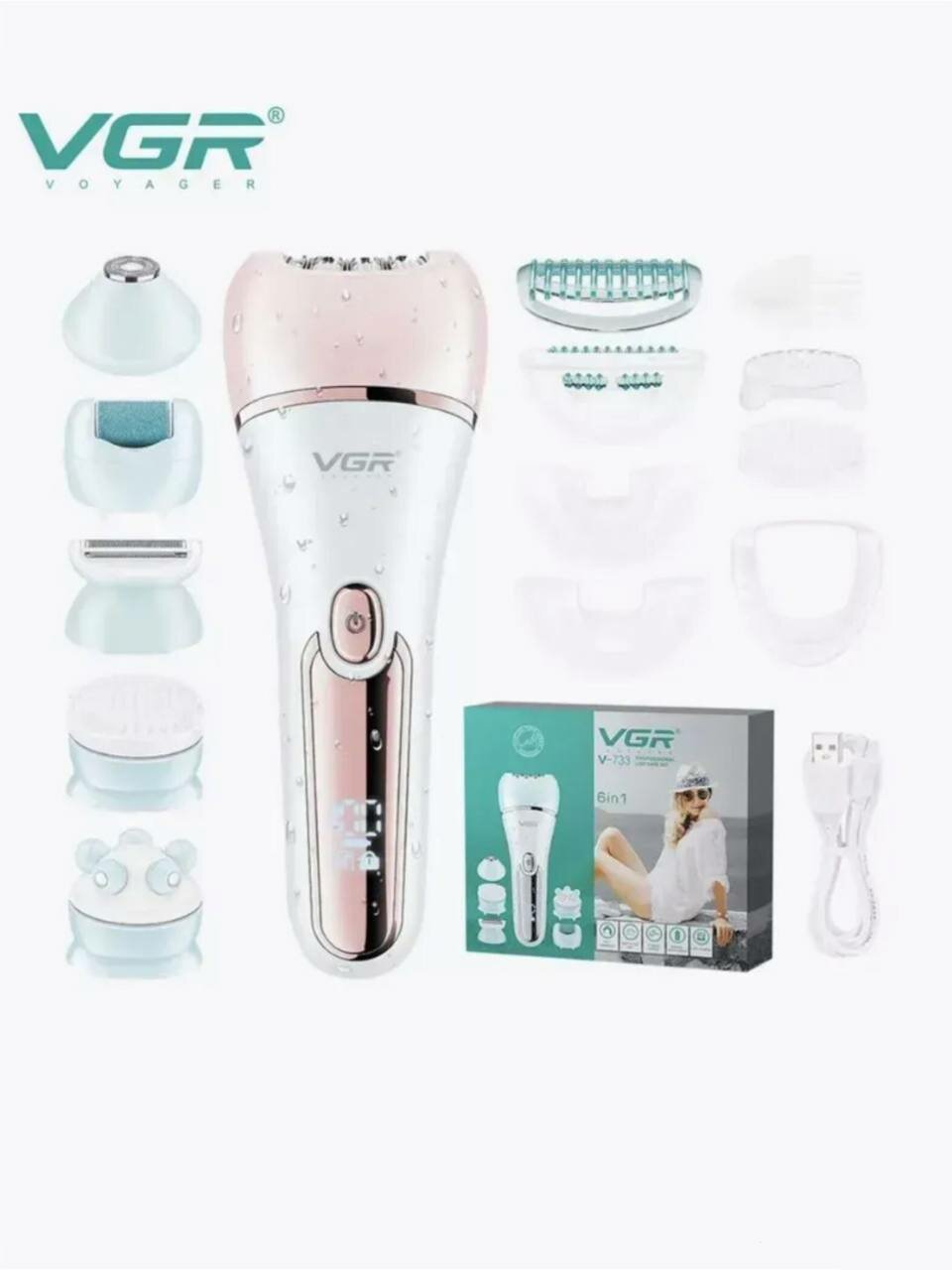 Купить Эпилятор VGR V-733 6в1, с массажем, для тела, лица и зоны бикини, встроенный аккумулятор