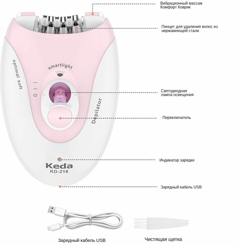 Женский эпилятор Keda-216 с 2 регуляторами скорости + светодиодной подсветкой интересное: