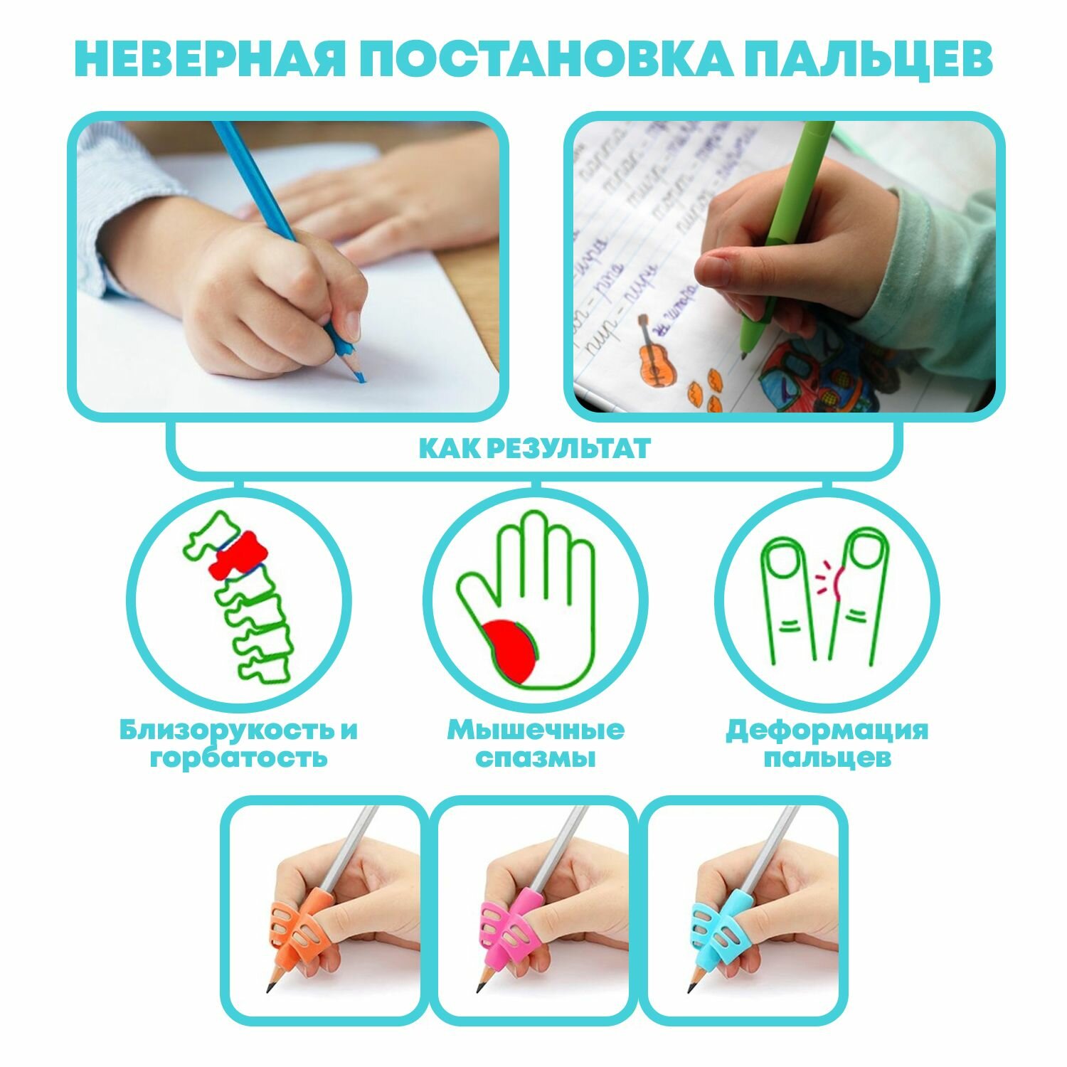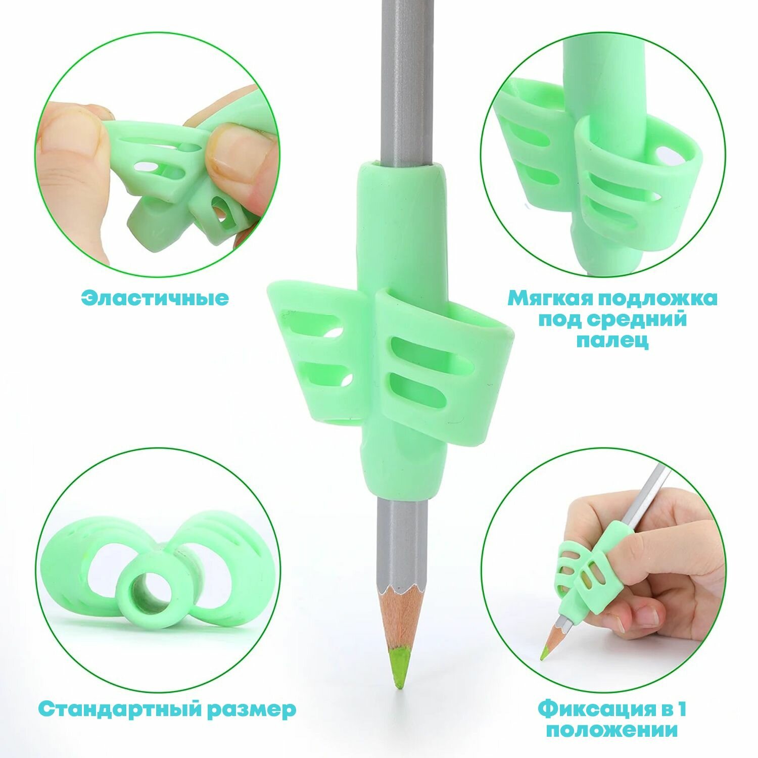 | Подробная комплектация | Силиконовый тренажер-насадка на ручку - набор 3 штуки |