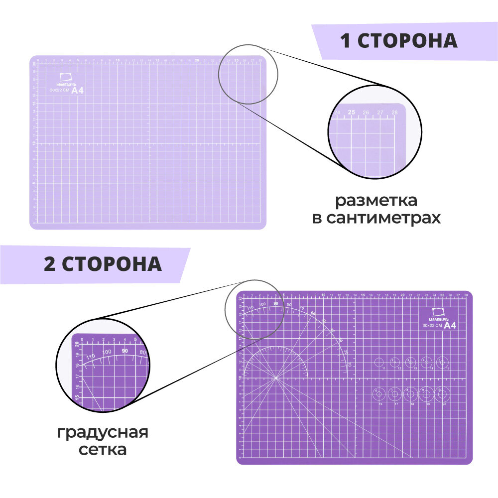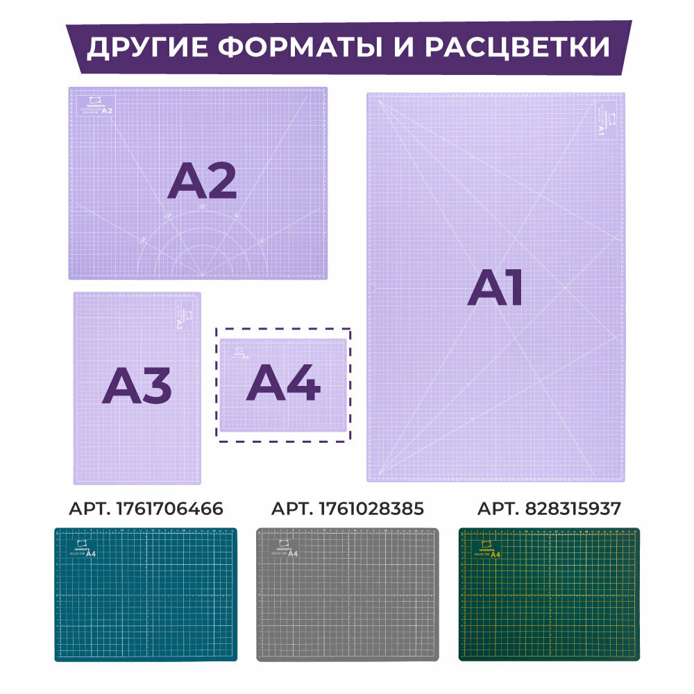 Коврик для резки "Малевичъ", А4, 3 слоя, самовосстанавливающийся, сиреневый интересное: