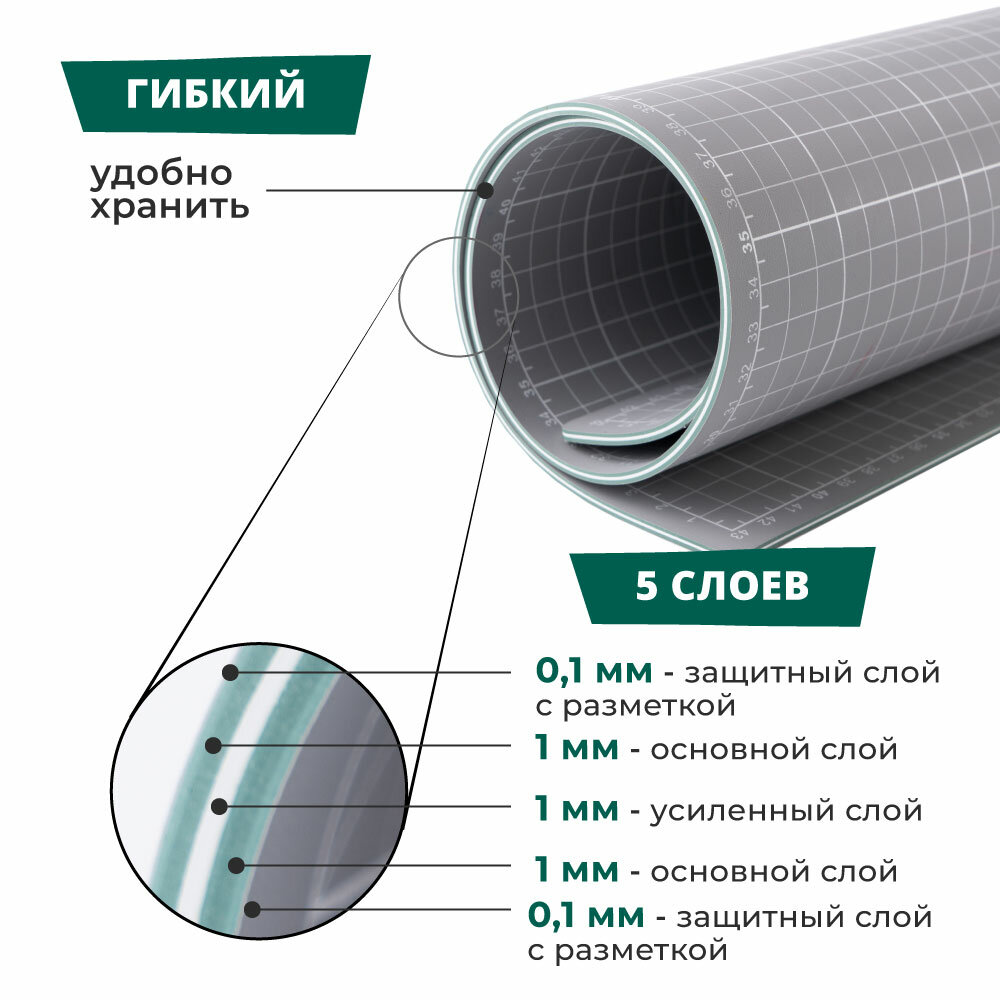 Коврик для резки Малевичъ 5 слойный, двухсторонний, серый, А1 интересное:
