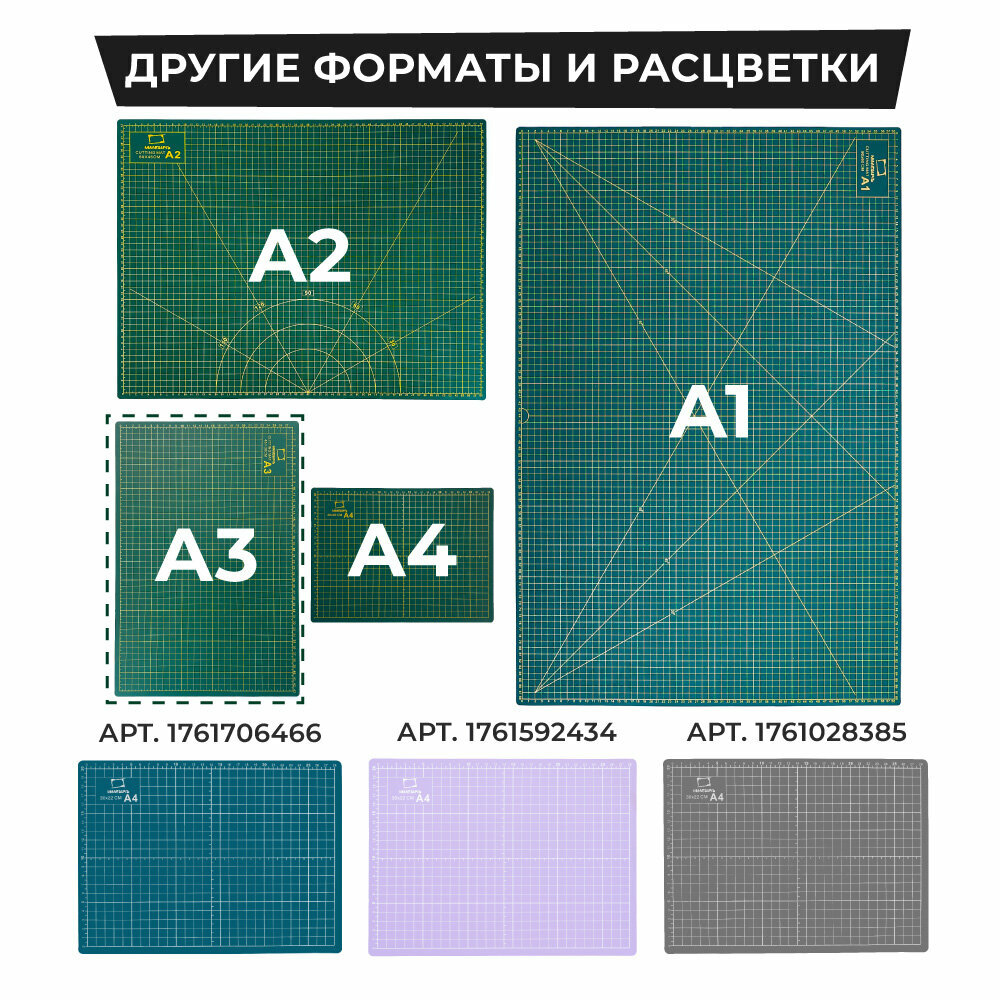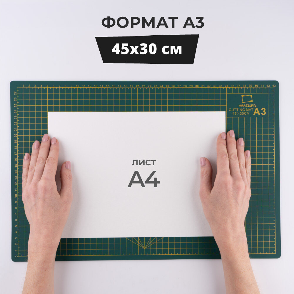 Коврик для резки Малевичъ, зеленый двухсторонний, разметка в см, А3 интересное: