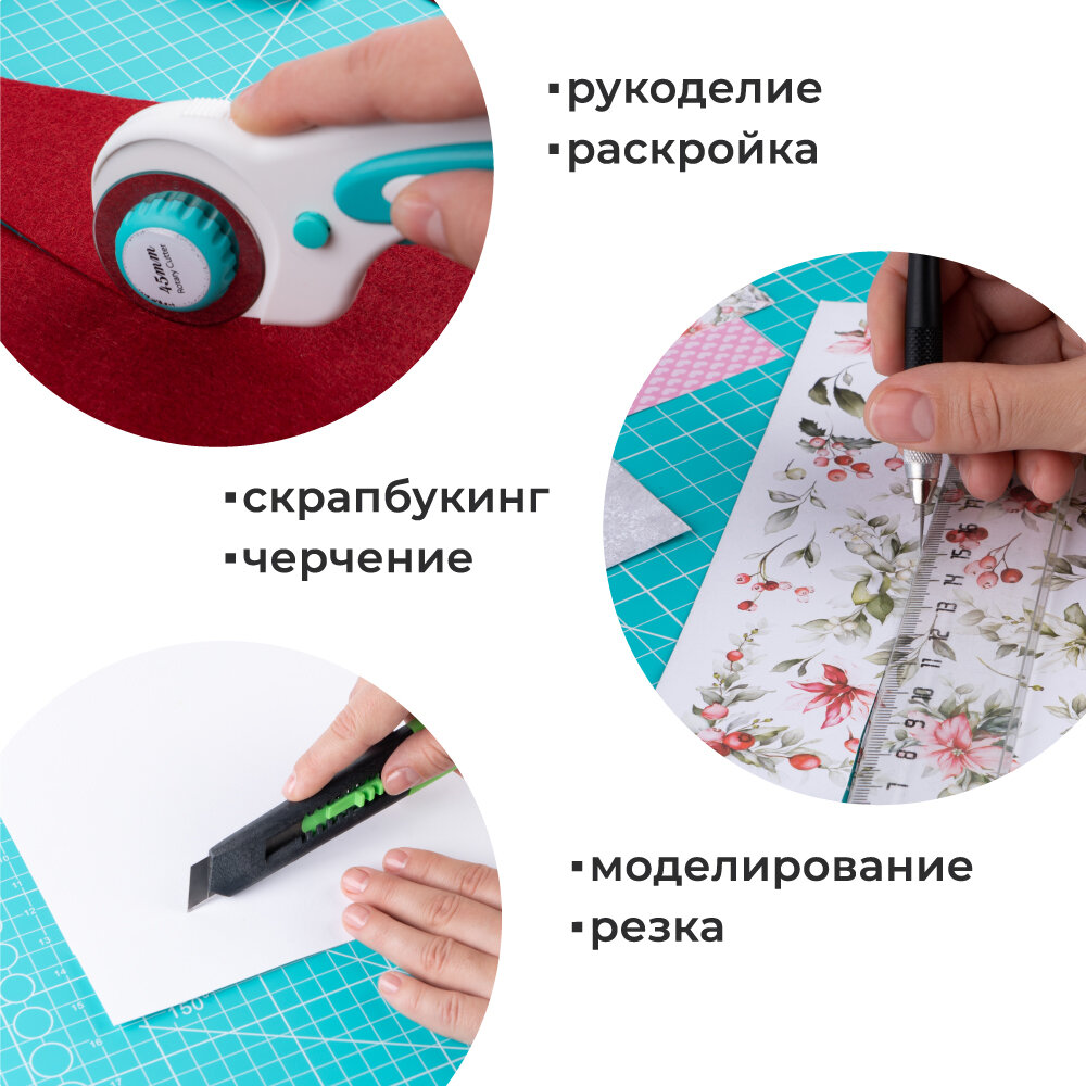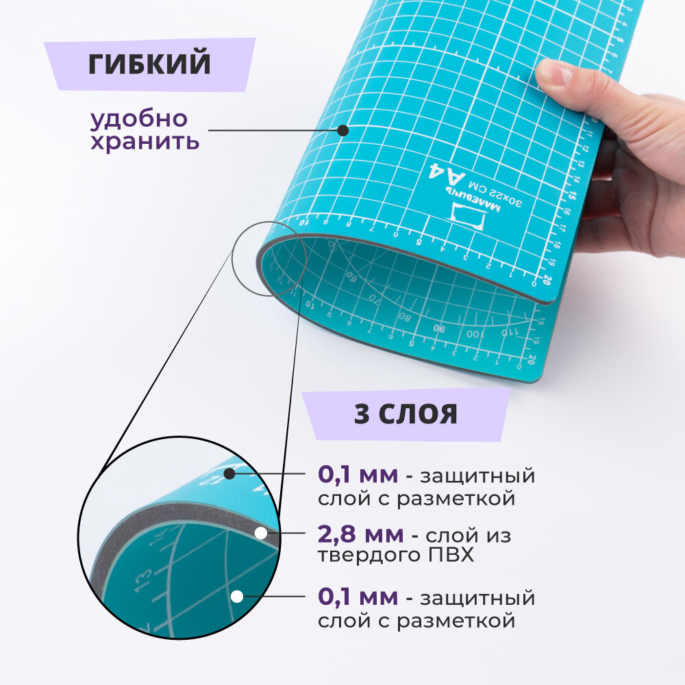 Коврик для резки Малевичъ, 3-слойный, A4, бирюзовый, двухсторонний интересное: