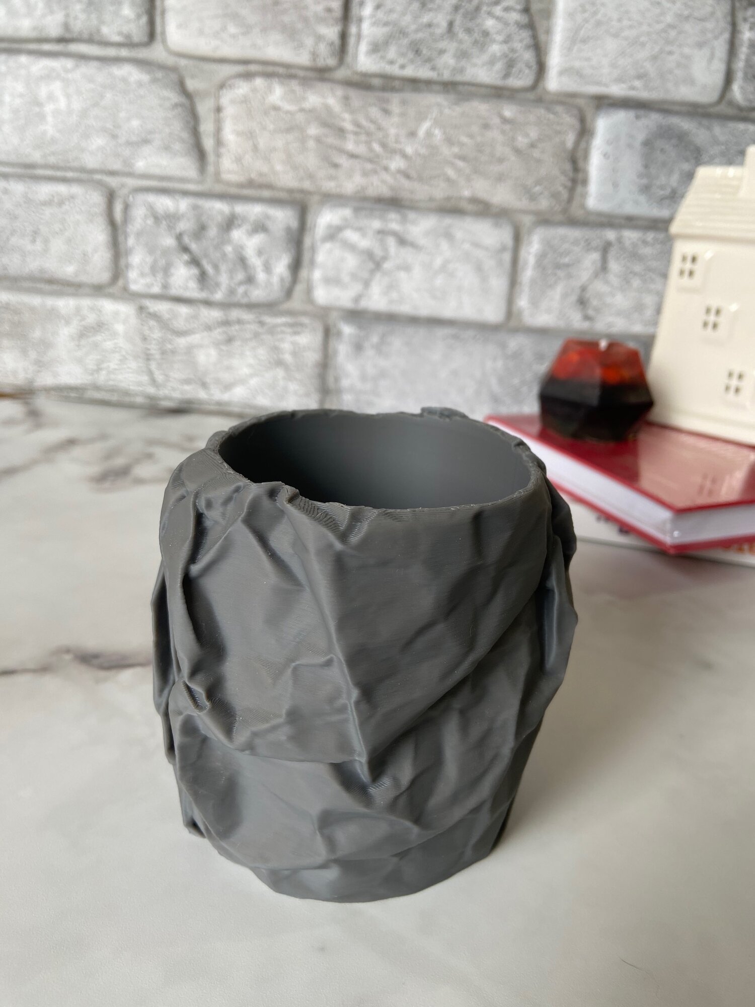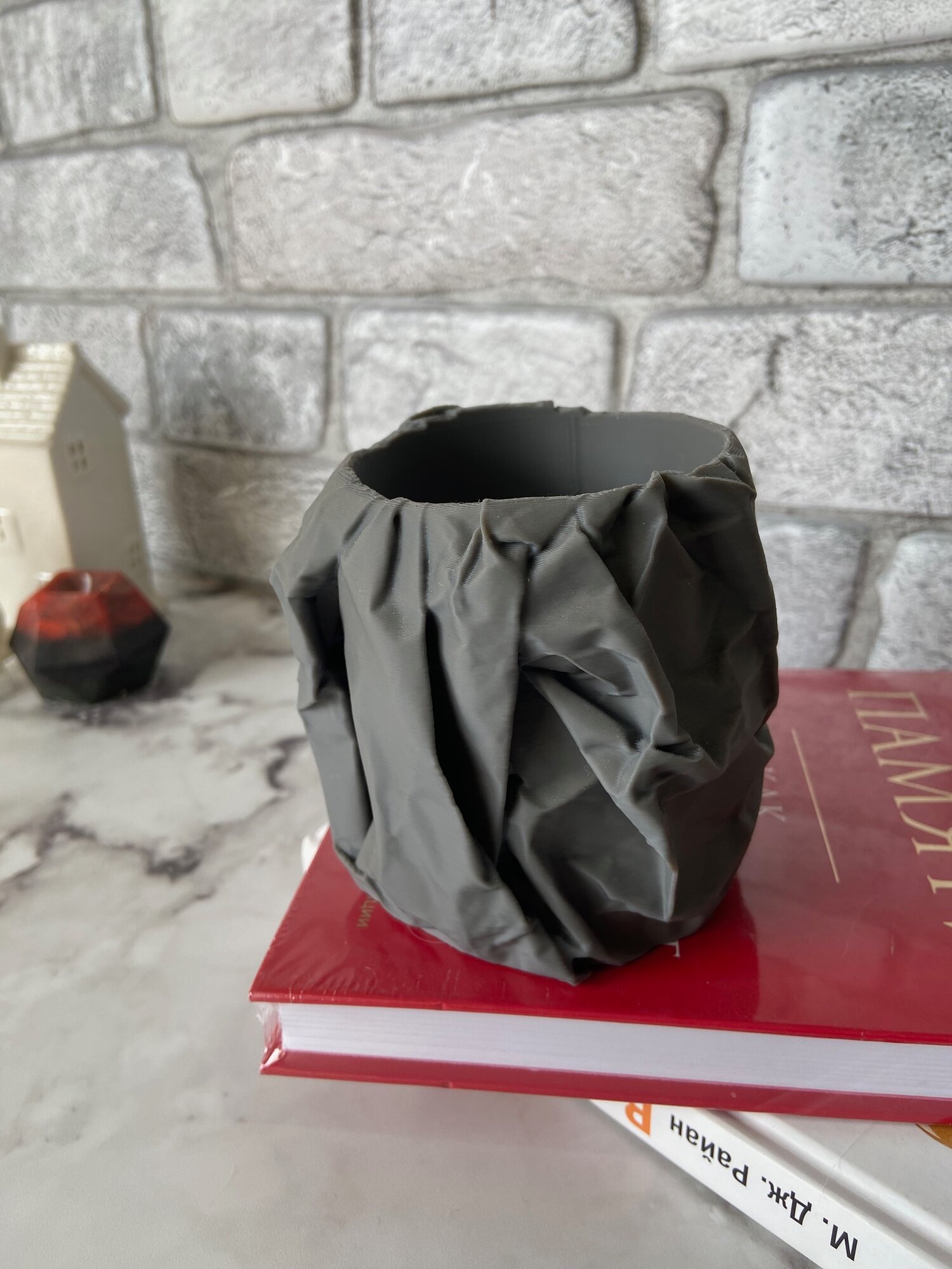 Подставка для канцелярских принадлежностей, "Мятый", пластик, серая интересное: