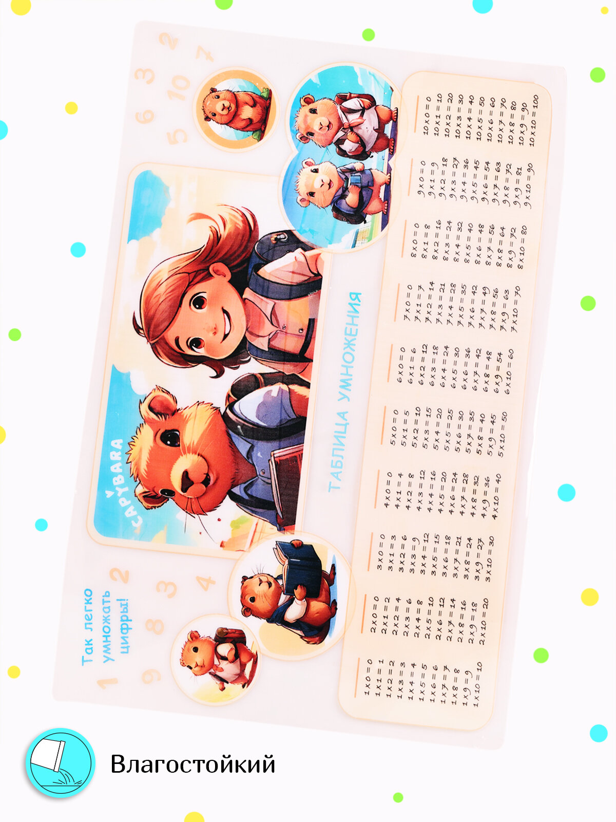 Коврик защитный на стол "Капибара таблица умножения " 40*60см