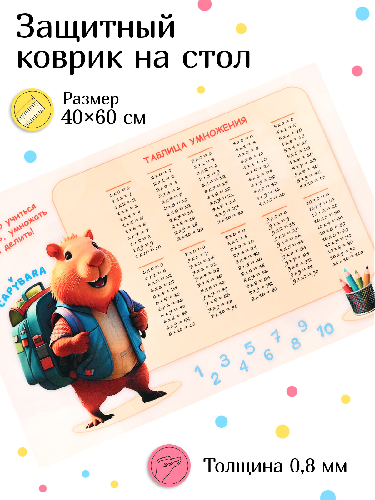 СохранитьКоврик защитный на стол "Капибара таблица умножения " 40*60см интересное: