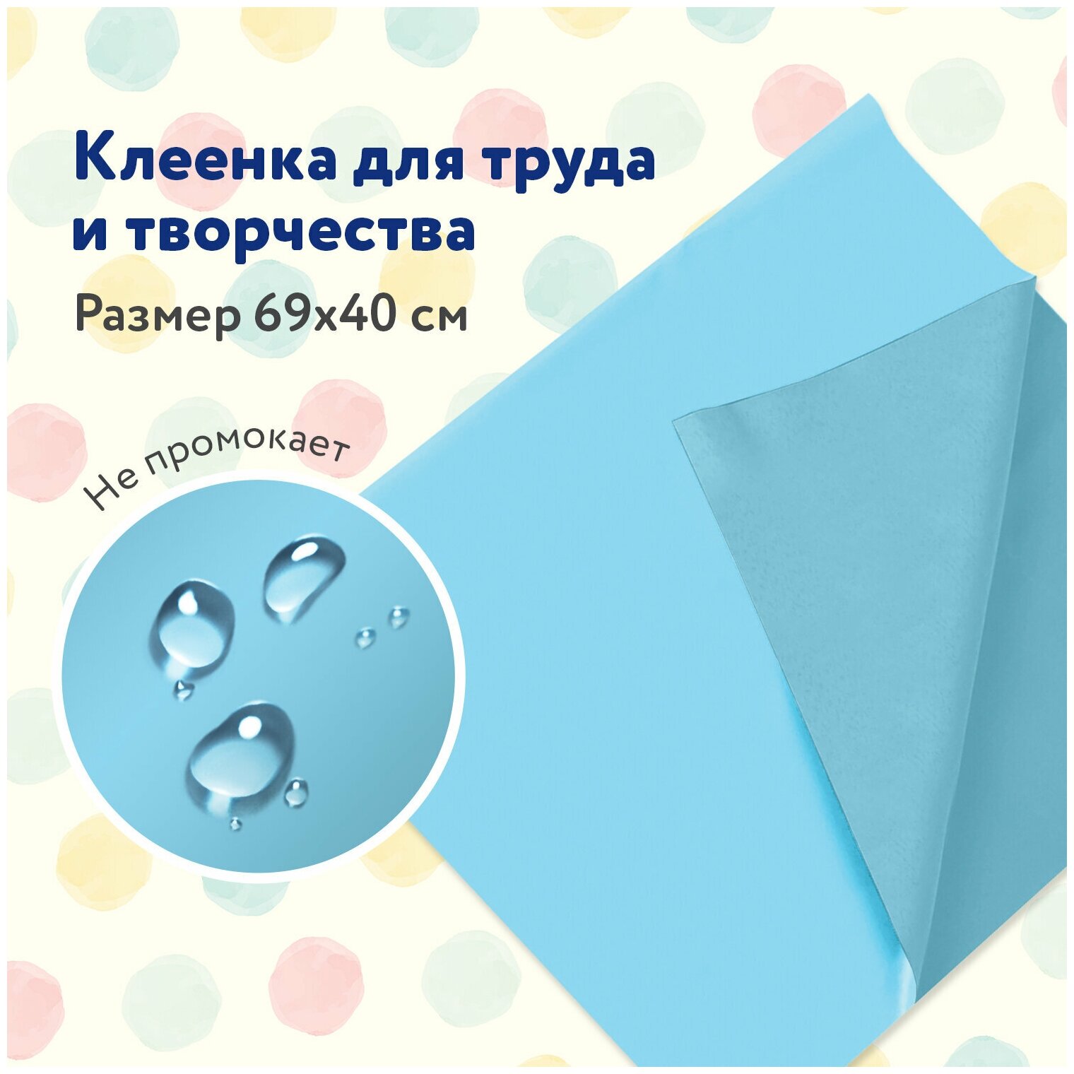 Клеенка для уроков труда Пифагор, ПВХ, голубая, 69х40см (228116)