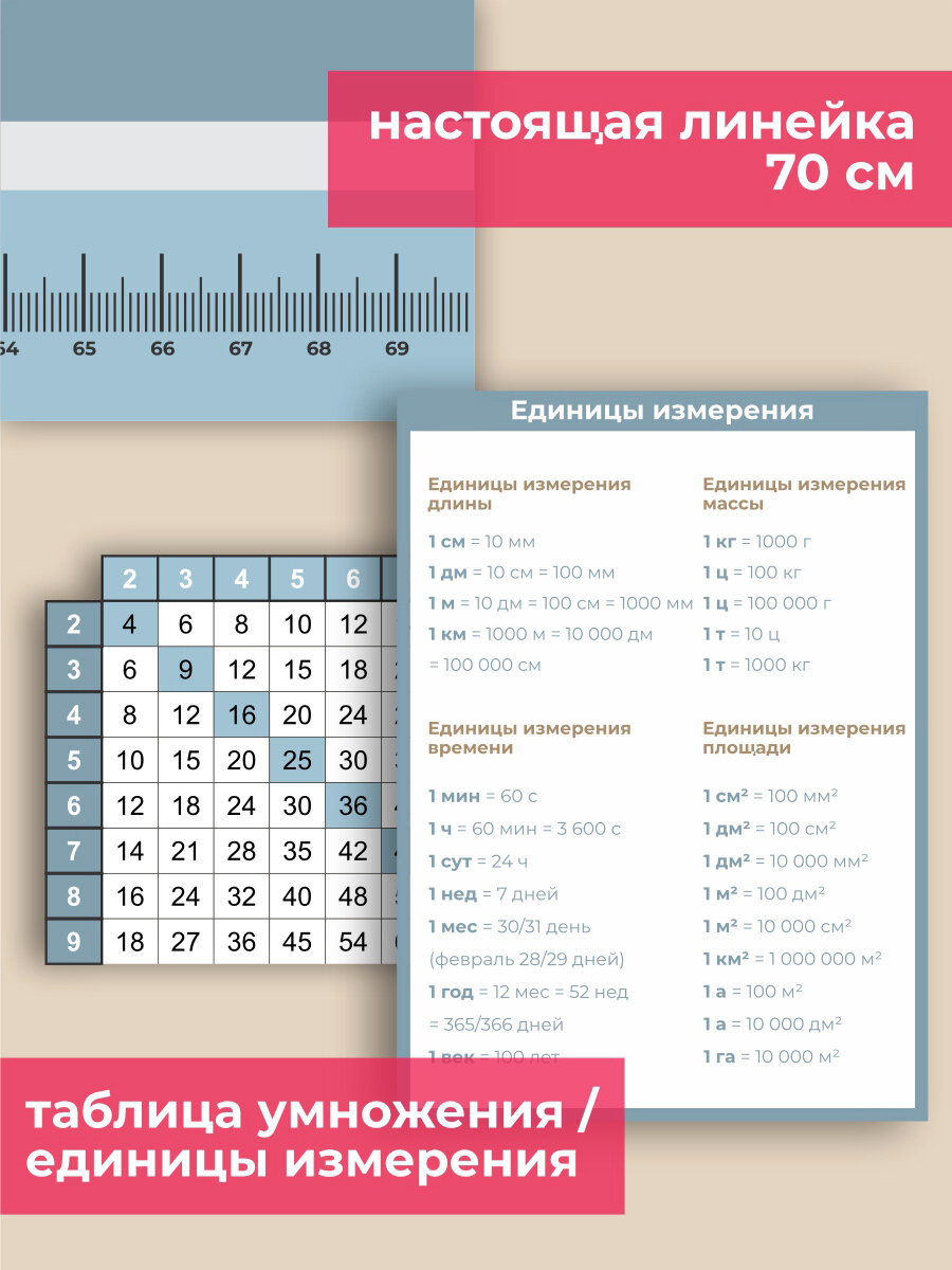 Коврик D|COVER, для детского рабочего стола, силиконовый, с обучающей таблицей умножения интересное: