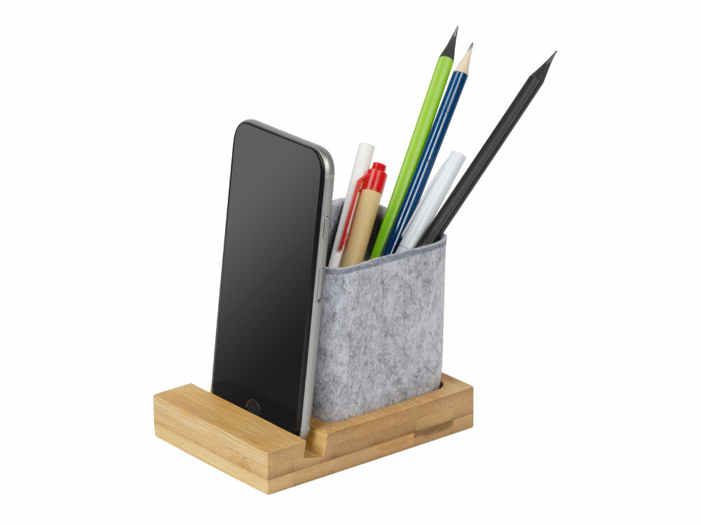 Подставка для ручек и телефона из бамбука «Takeshi», цвет натуральный, серый интересное: