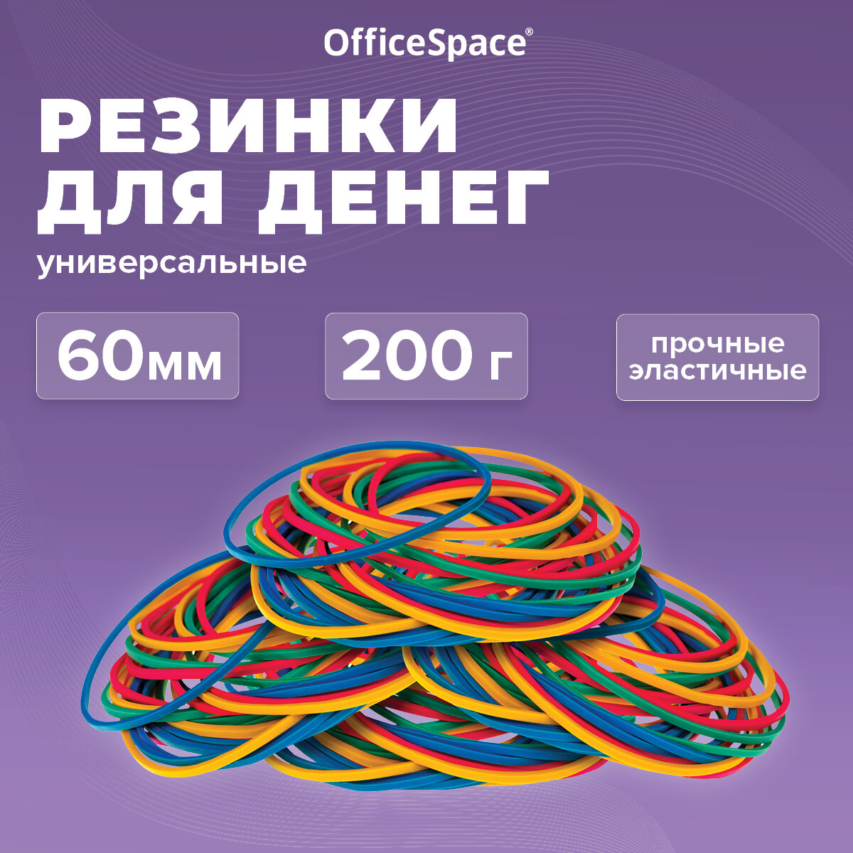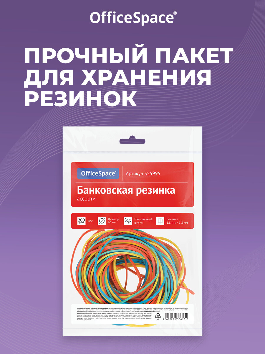Банковская резинка 200г OfficeSpace, диаметр 60мм, ассорти, опп пакет с европодвесом интересное: