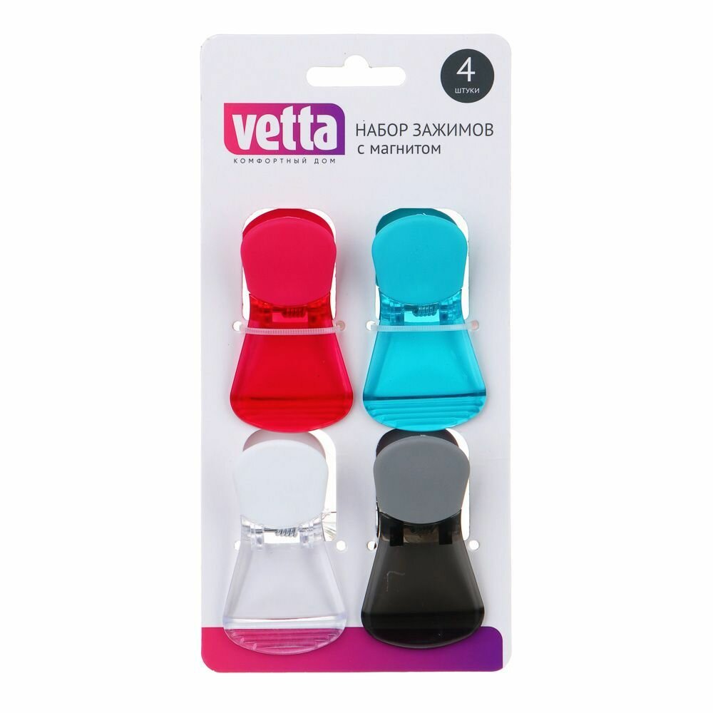 Набор зажимов с магнитом VETTA , 4шт, 7х4х3см, пластик/ магнитная клипса держатель интересное: