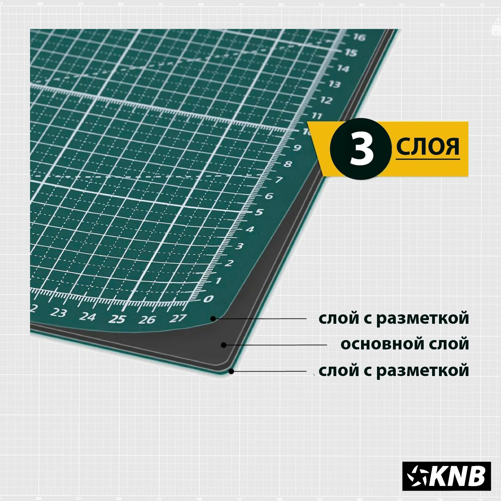 Коврик для резки защитный KNB A3 450x300x3 мм, самовосстанавливающийся, непрорезаемый, двусторонняя разметка, зеленый