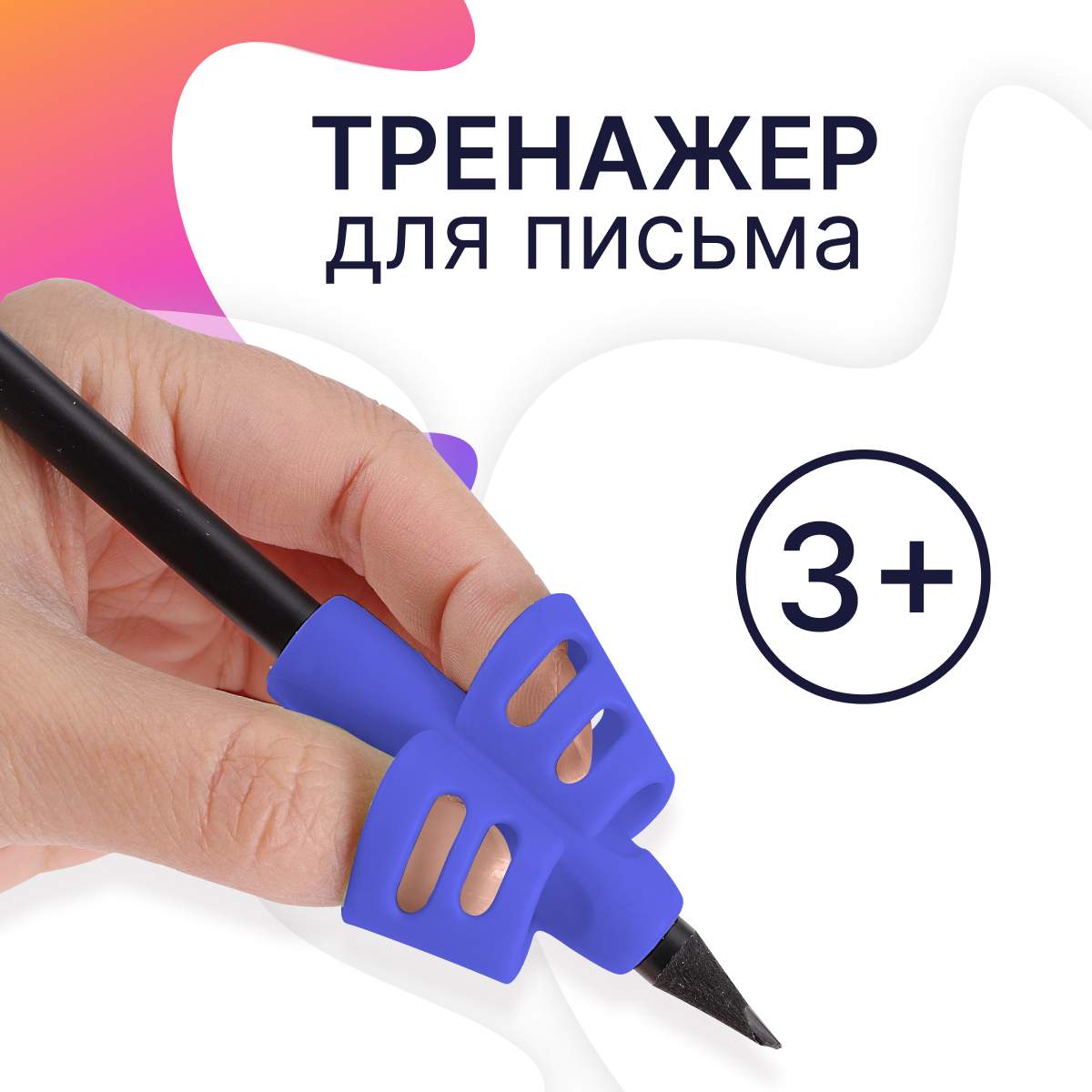 Купить Тренажер для постановки письма / Держатель ручки для правильного письма / Силиконовая насадка на ручку для детей / Синий