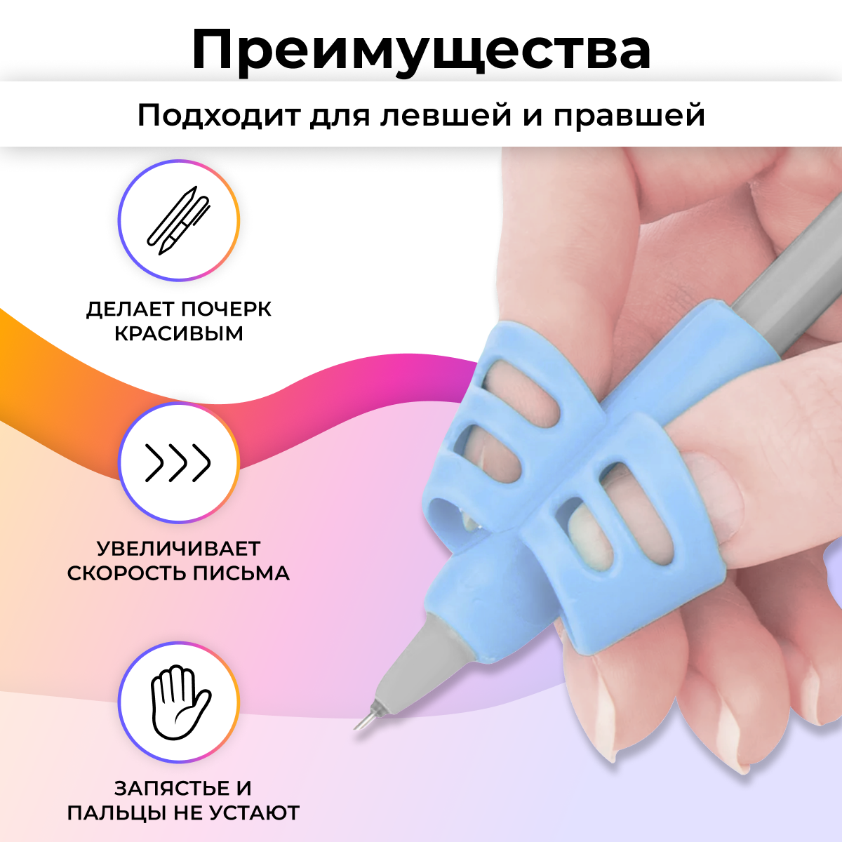 Тренажер для постановки письма / Держатель ручки для правильного письма / Силиконовая насадка на ручку для детей / Синий
