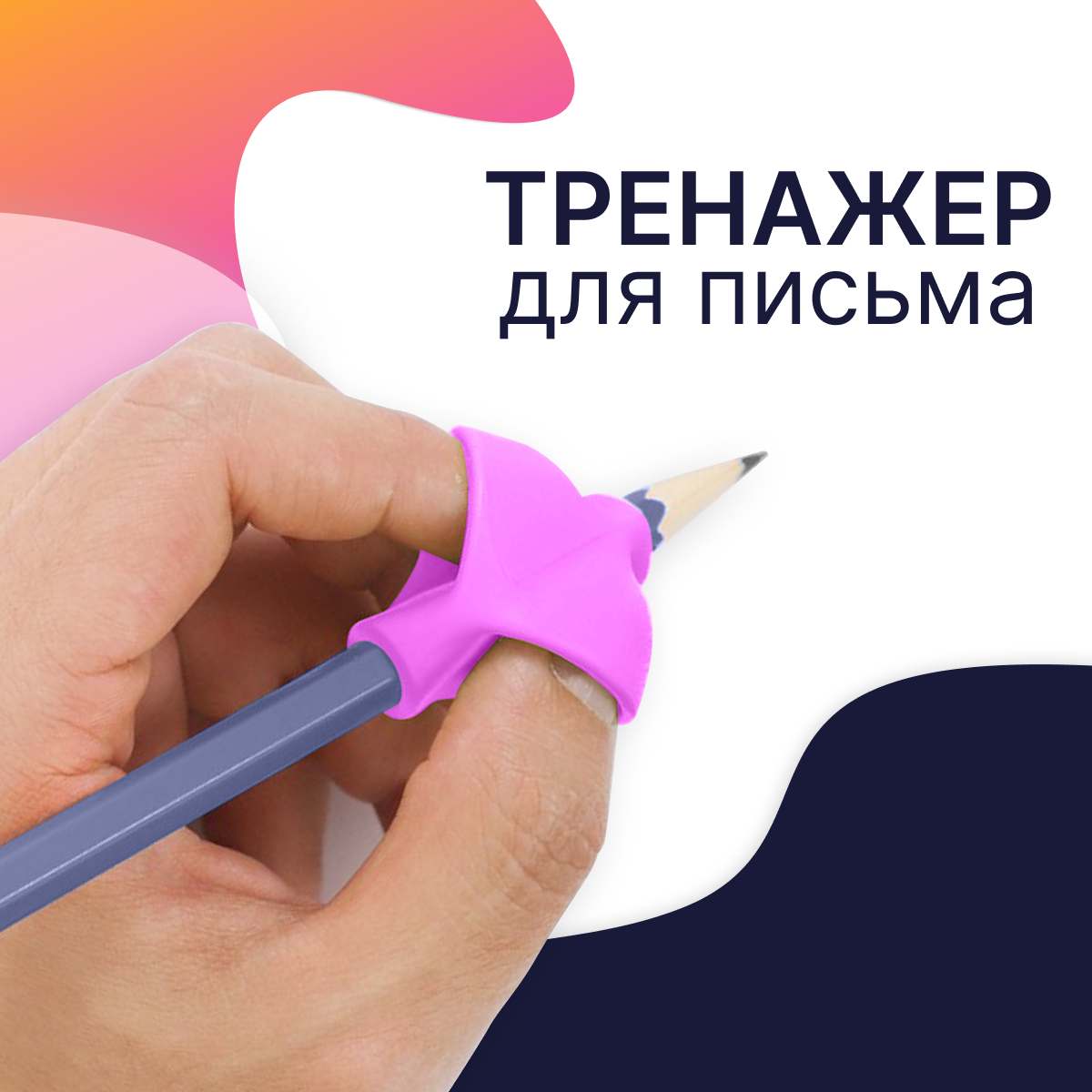 Тренажер для постановки письма / Силиконовая насадка на ручку для детей / для правшей и левшей / Розовый