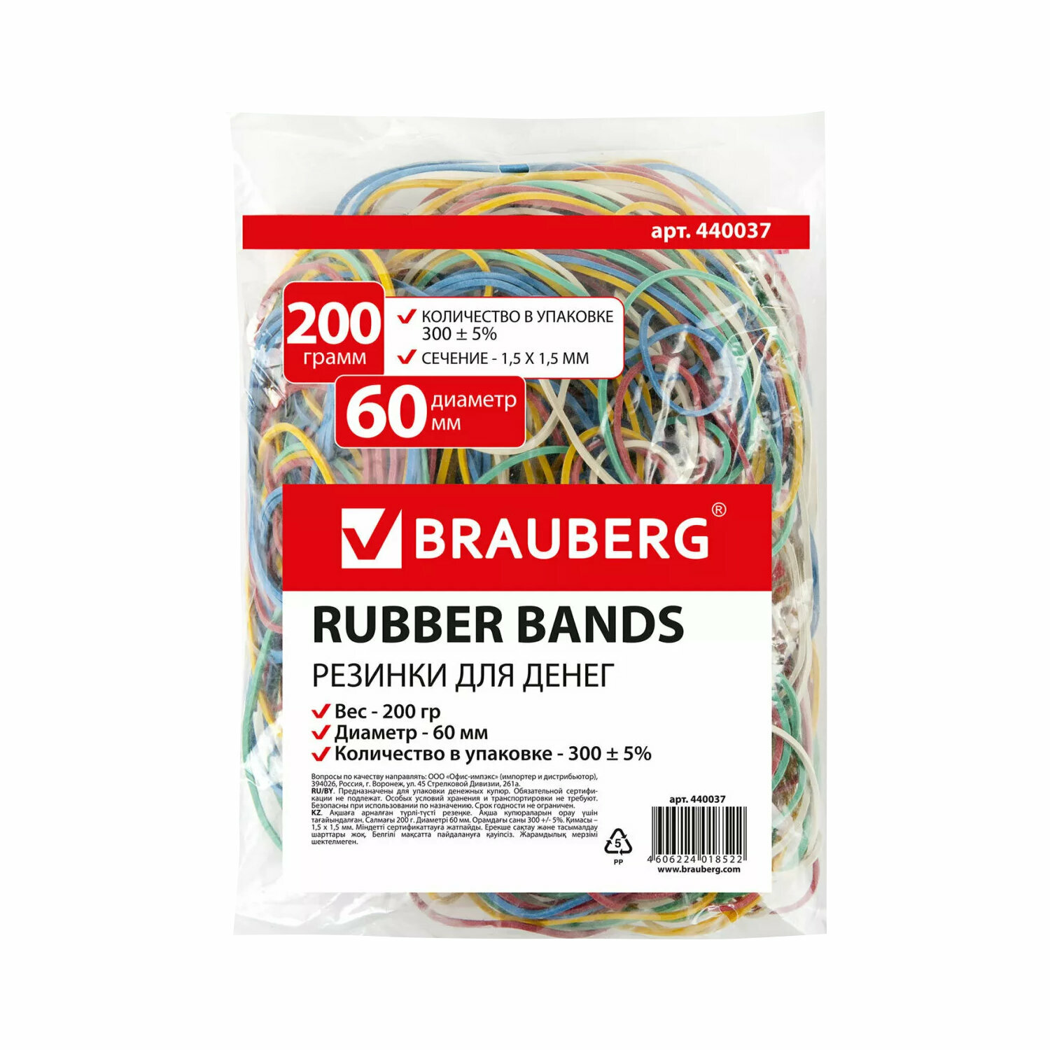 Купить Резинки банковские универсальные диаметром 60 мм, Brauberg 200 г, цветные, натуральный каучук, 440037