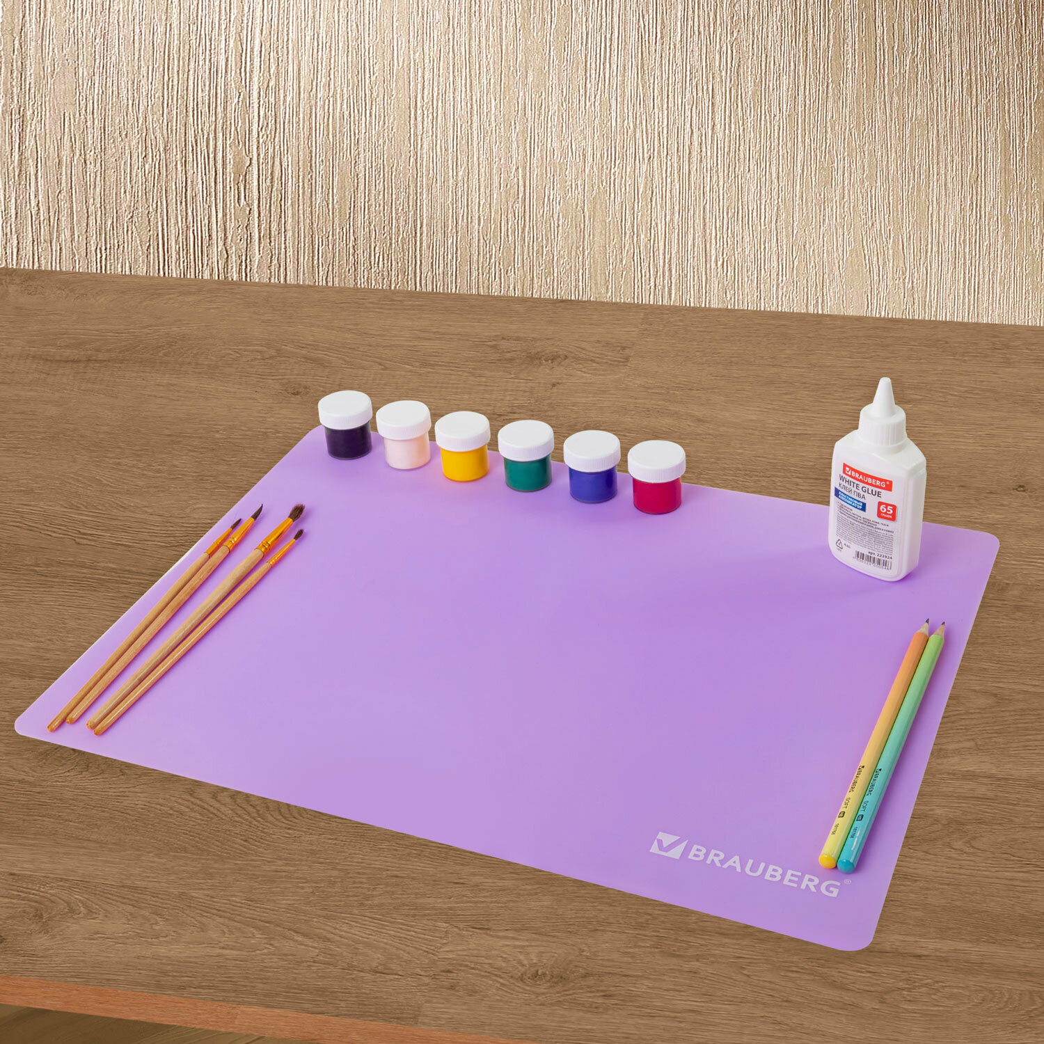 Купить Клеенка настольная детская для труда и рисования, подложка на стол письменный фиолетовая, коврик для творчества, 30х40 см, силикон, Brauberg, 272375