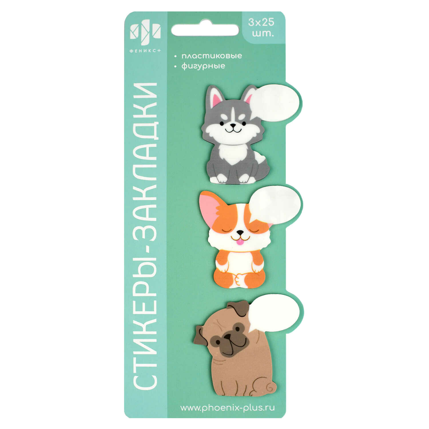 Купить Стикеры-закладки пластиковые, "ПСЫ", размер 46х48; 47х49; 49х49 мм, 3 цвета, 75 шт. в наборе