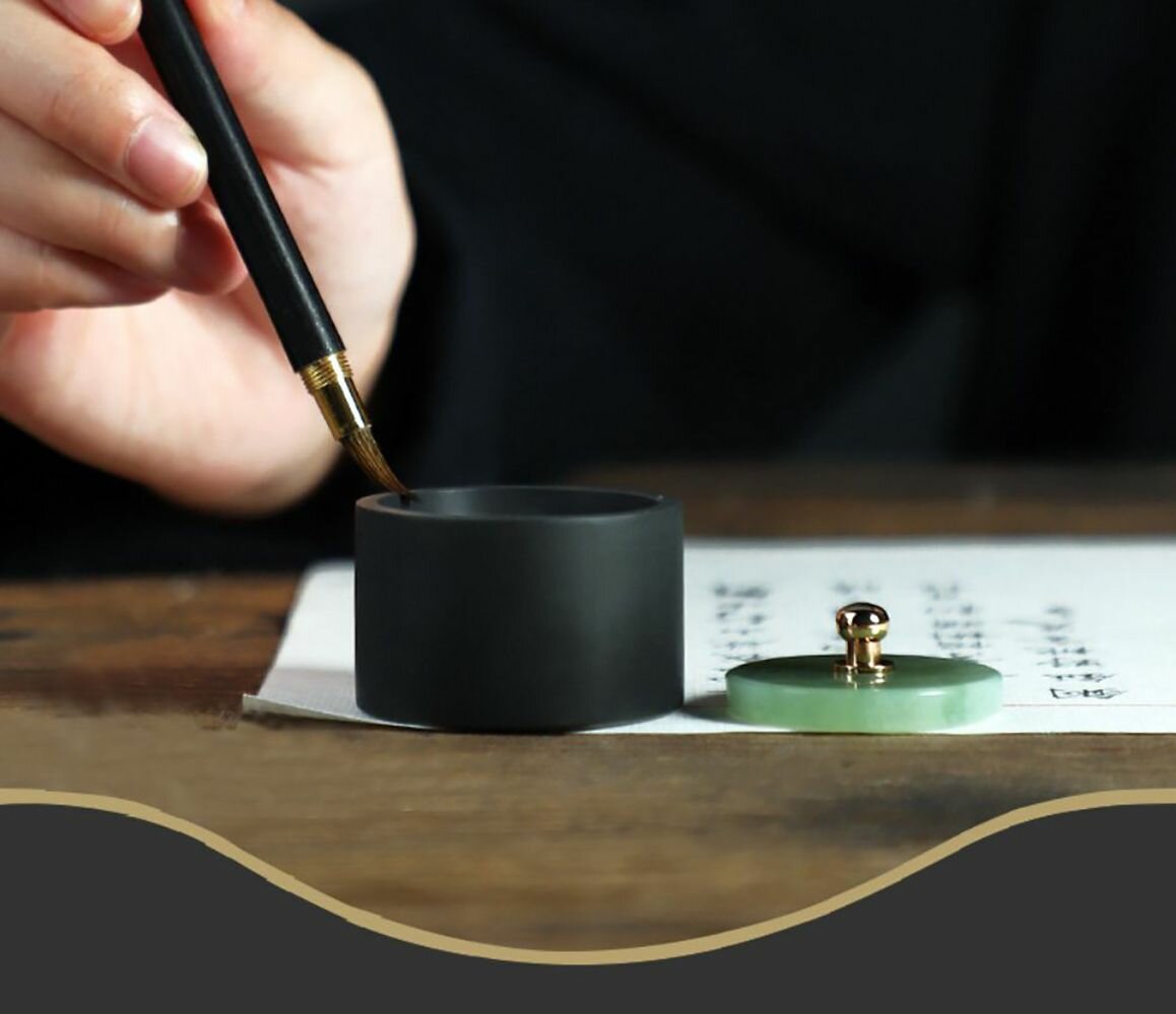 Керамическая чаша с крышкой для туши и воды. Чернильница для каллиграфии