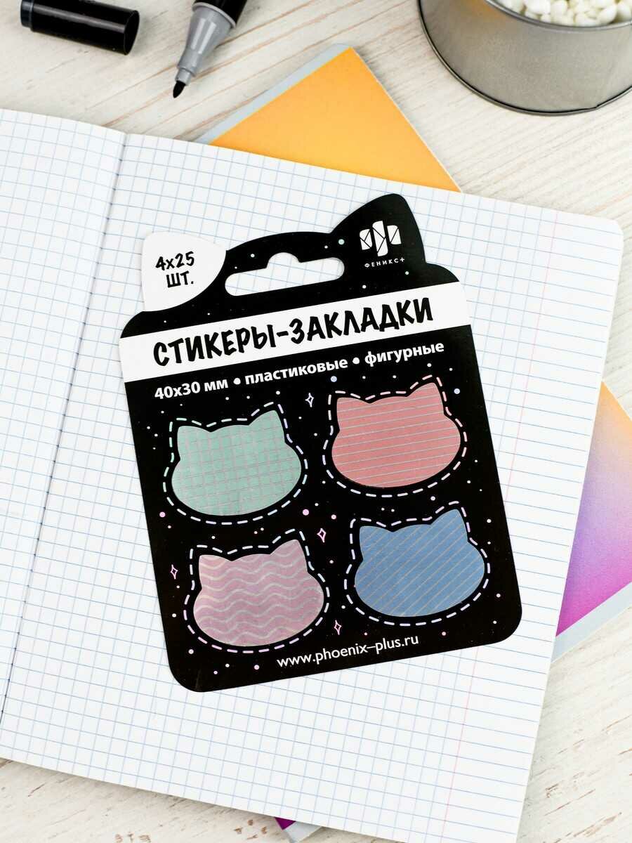 Стикеры Феникс+ "Кошачьи головы на черном", фигурные, пластик, голографический, 100шт интересное: